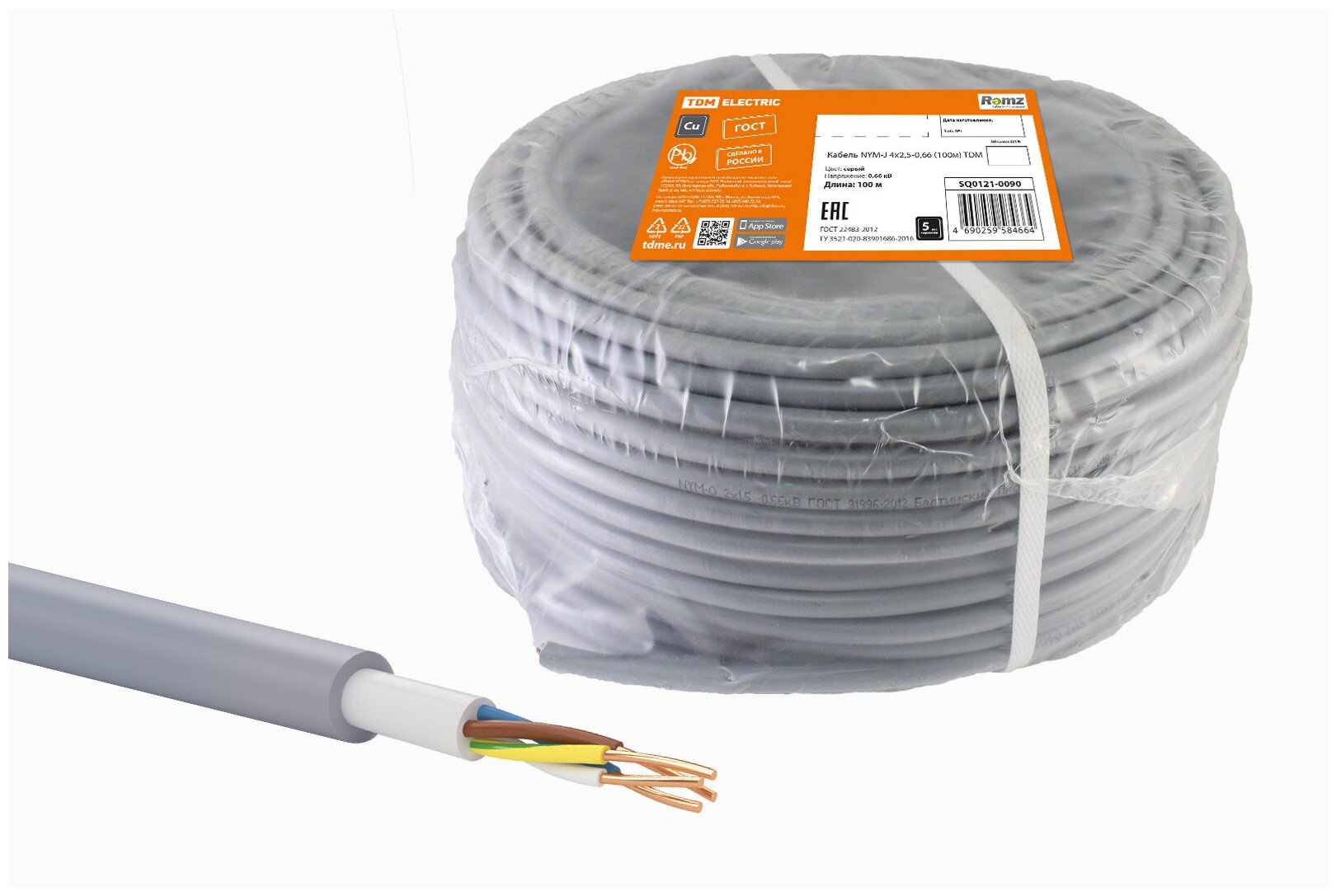 Кабель Tdm Electric NYM-J 4х2,5-0,66 (100м), SQ0121-0090