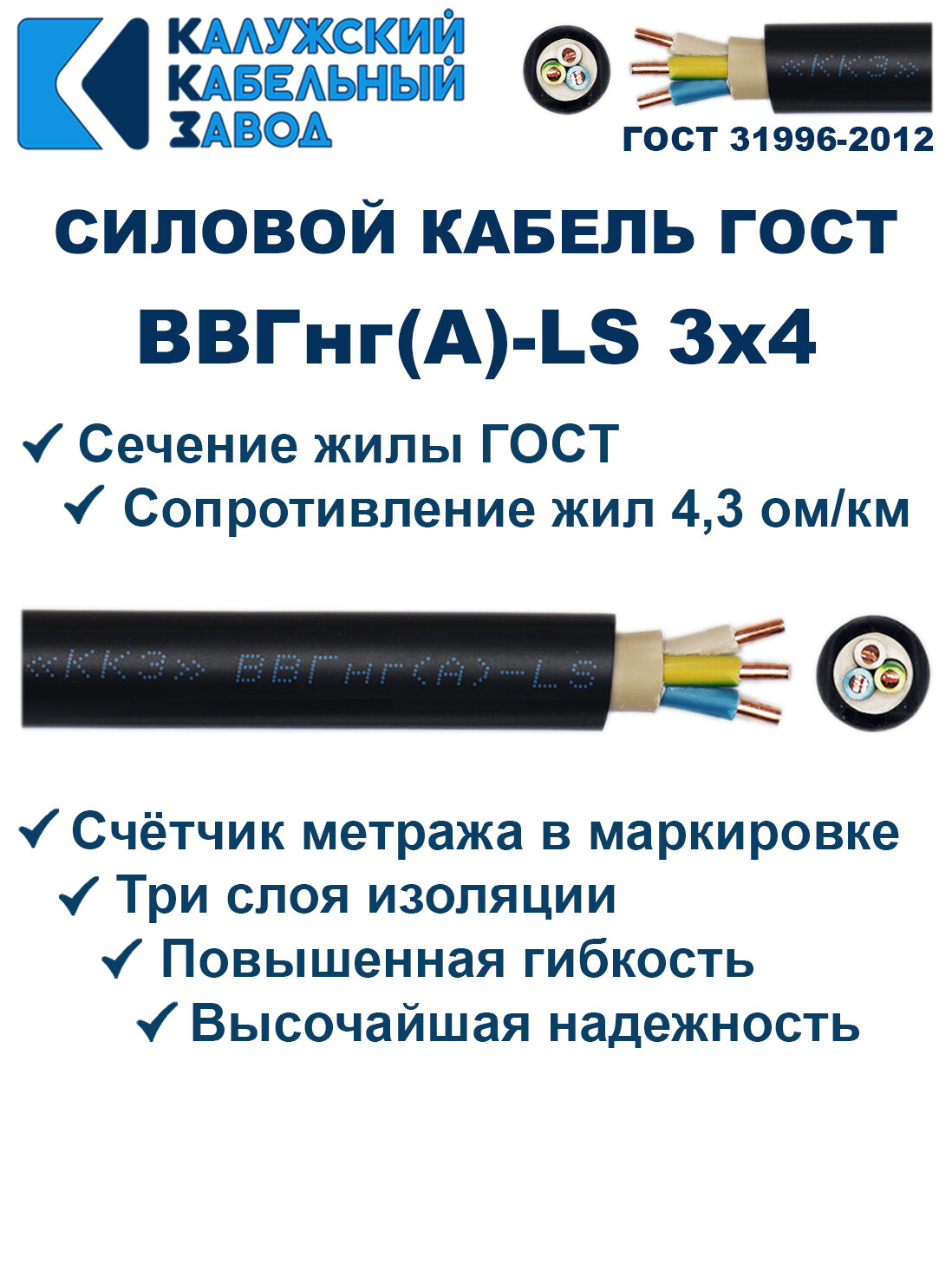 10 цен на Кабель силовой ВВГнг(А)-LS 3х4 ГОСТ. 45 метров. Калужский кабельный завод
