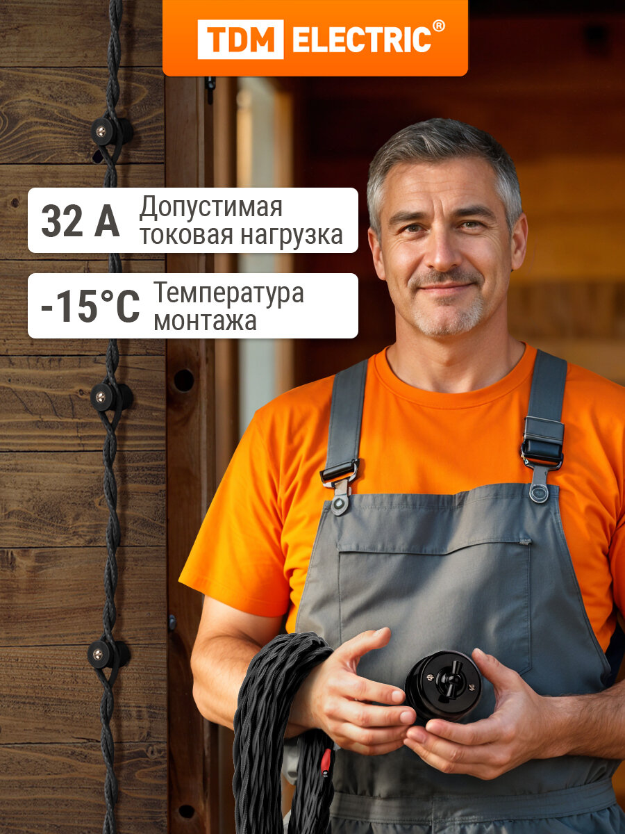 Ретро провод "Эко" 2х2,5 витой ГОСТ черный (50м) TDM ELECTRIC информация: