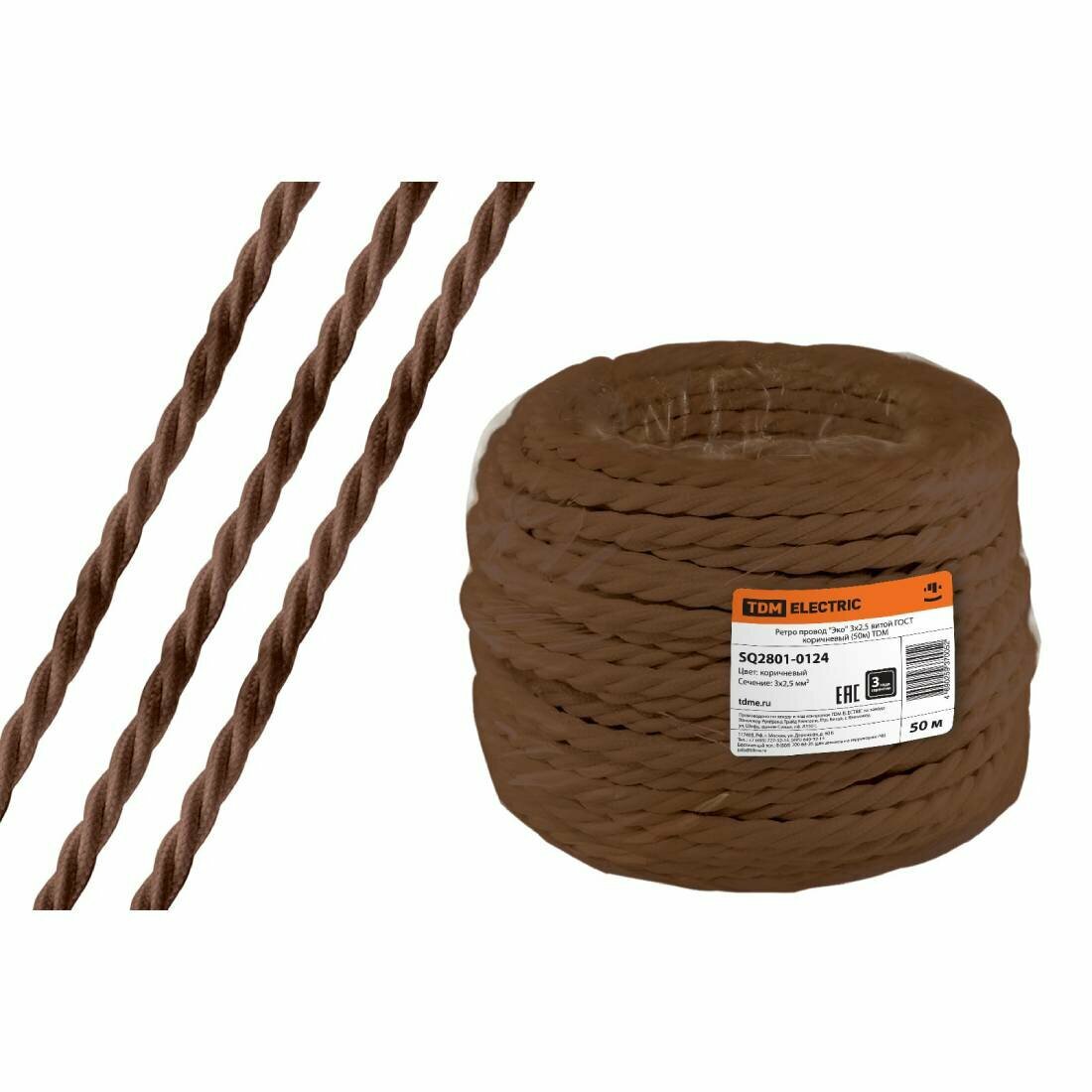Ретро провод "Эко" 3х2,5 витой ГОСТ коричневый (50м) TDM