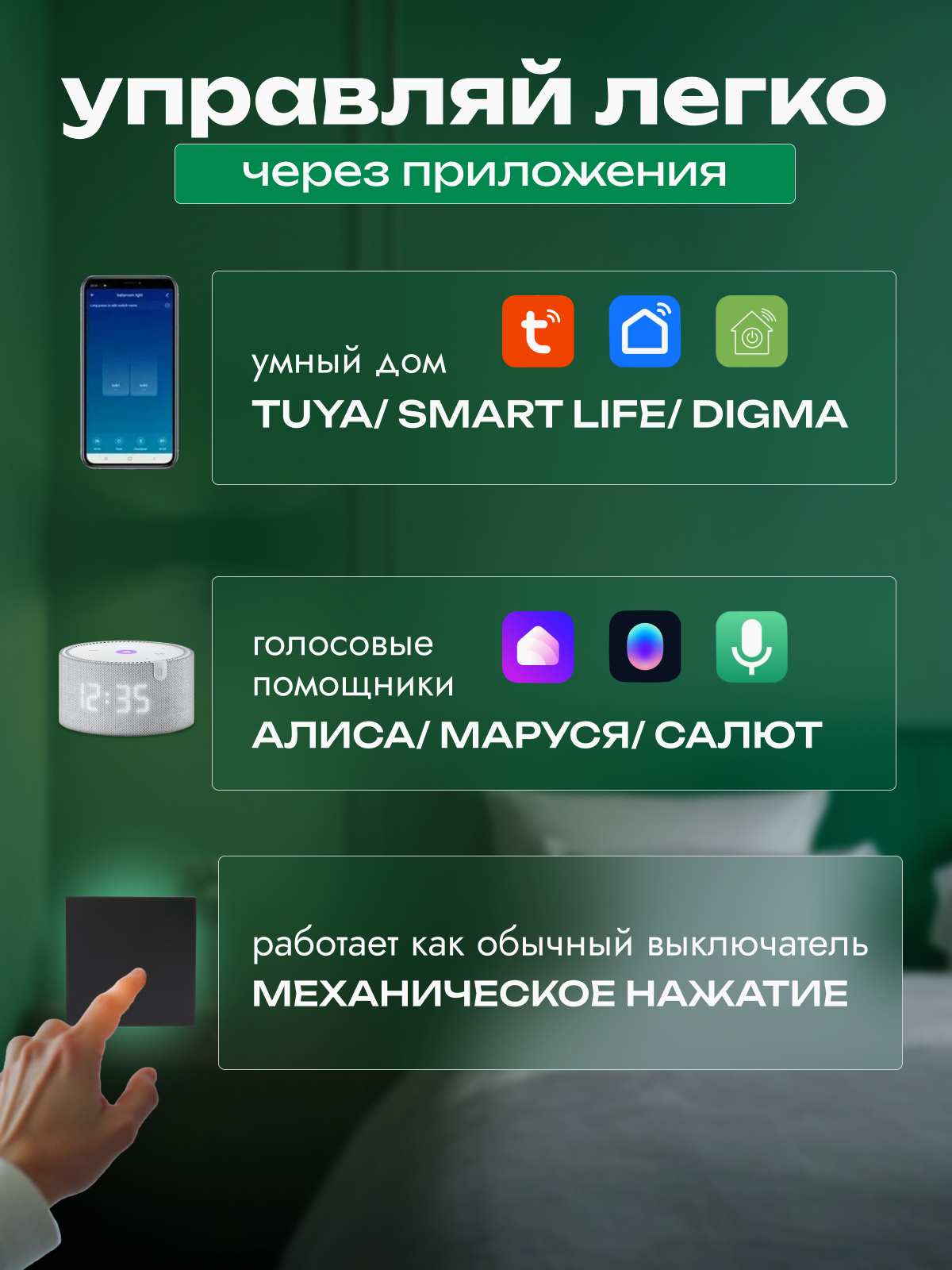 | Экосистема Умного дома | Amazon Alexa / DIGMA SmartLife / Google Home / Smart Life / Tuya Smart |