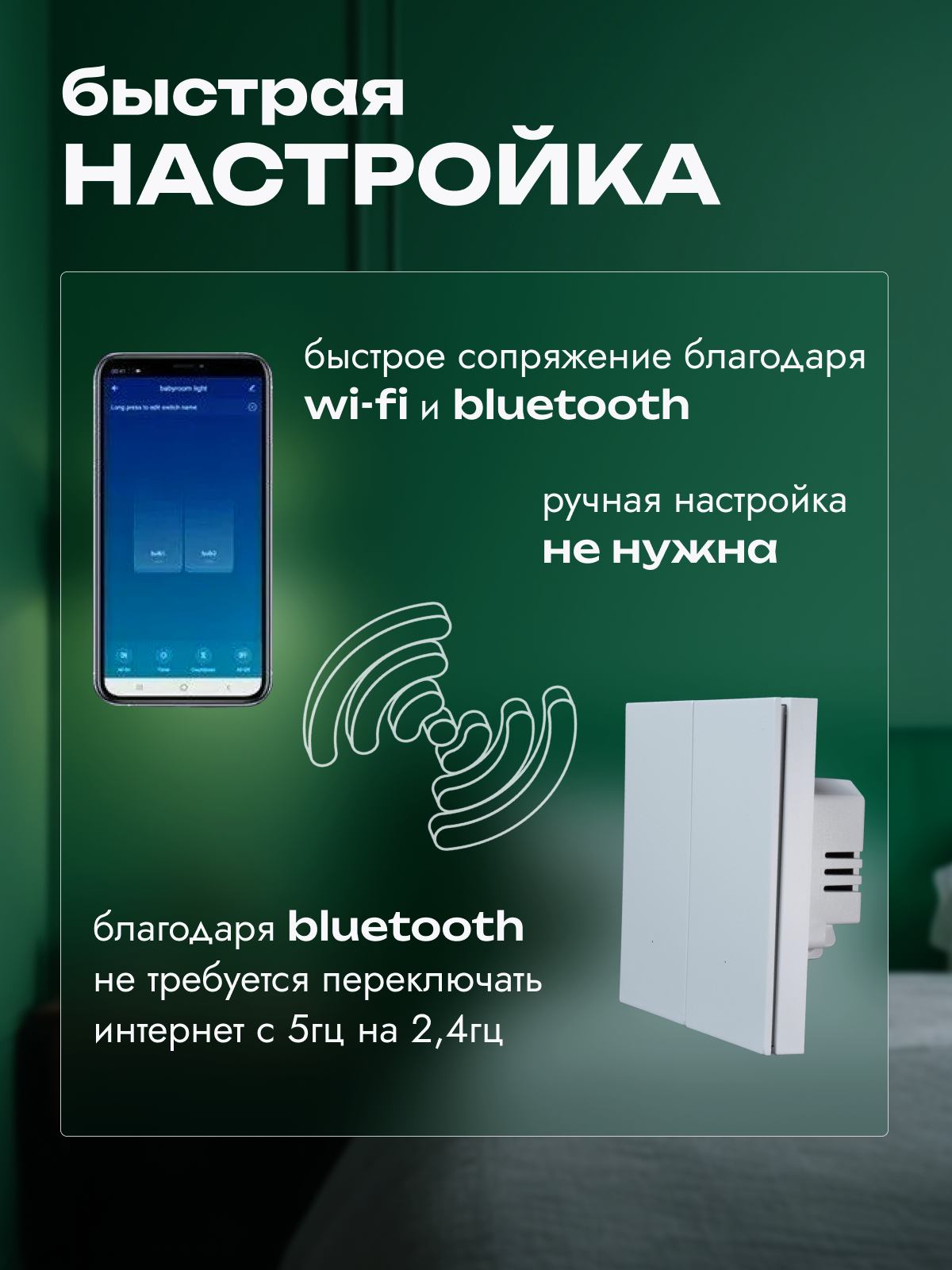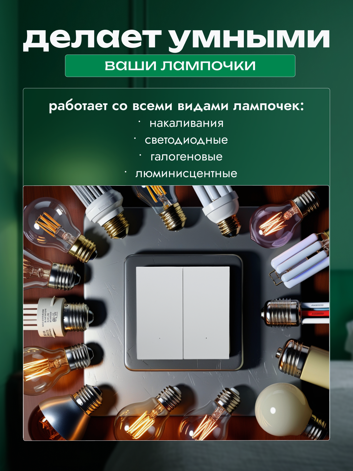 Отзывы на Умный выключатель двухклавишный белый Wi-Fi + Bluetooth, универсальный (конденсатор в комплекте)