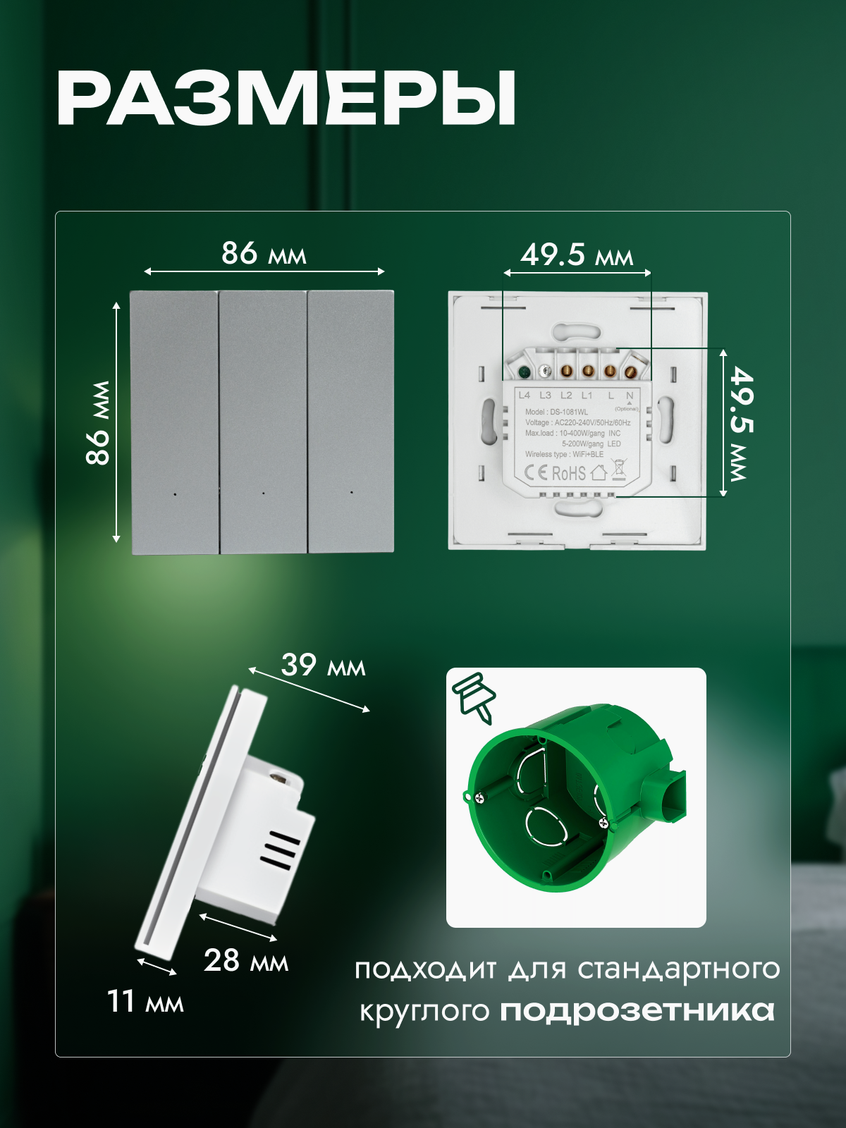 Отзывы на Умный выключатель трехклавишный серый Wi-Fi + Bluetooth, универсальный (конденсатор в комплекте)