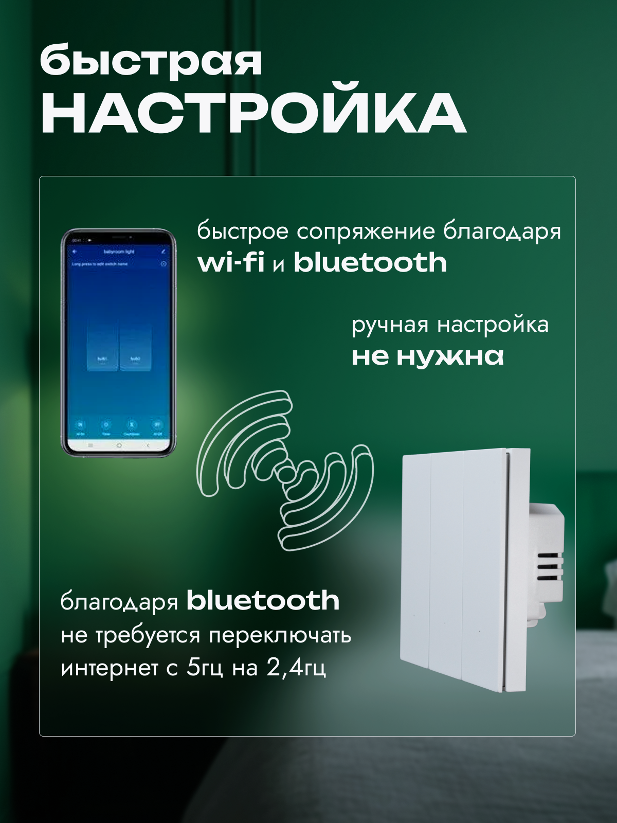 Отзывы на Умный выключатель трехклавишный белый Wi-Fi + Bluetooth, универсальный (конденсатор в комплекте)