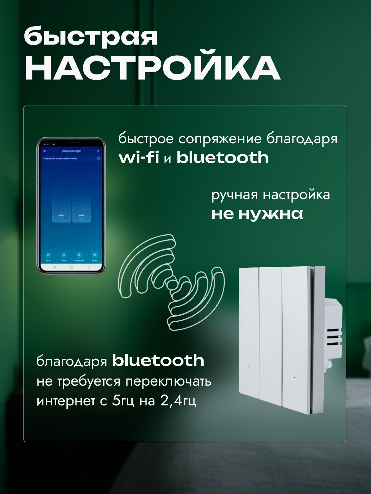 Отзывы на Умный выключатель трехклавишный серебристый Wi-Fi + Bluetooth, универсальный (конденсатор в комплекте)