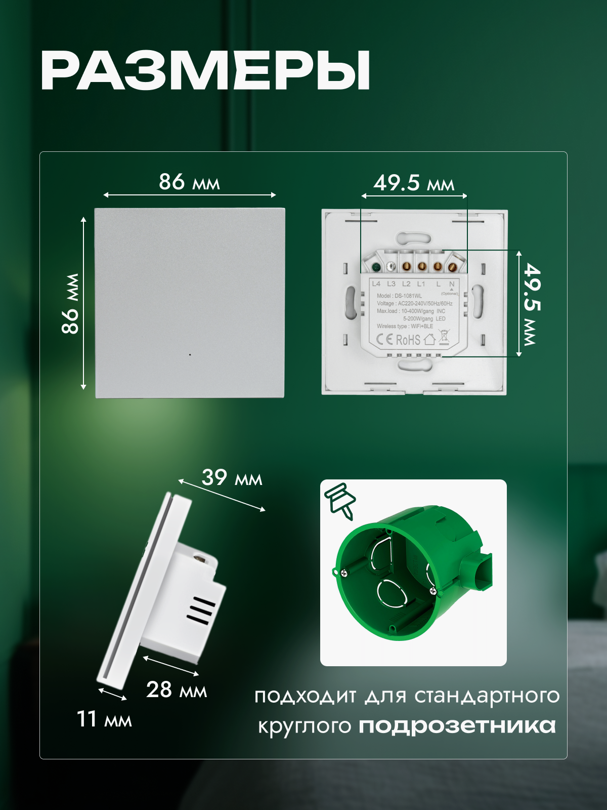 Отзывы на Умный выключатель одноклавишный серебристый Wi-Fi + Bluetooth, универсальный (конденсатор в комплекте)