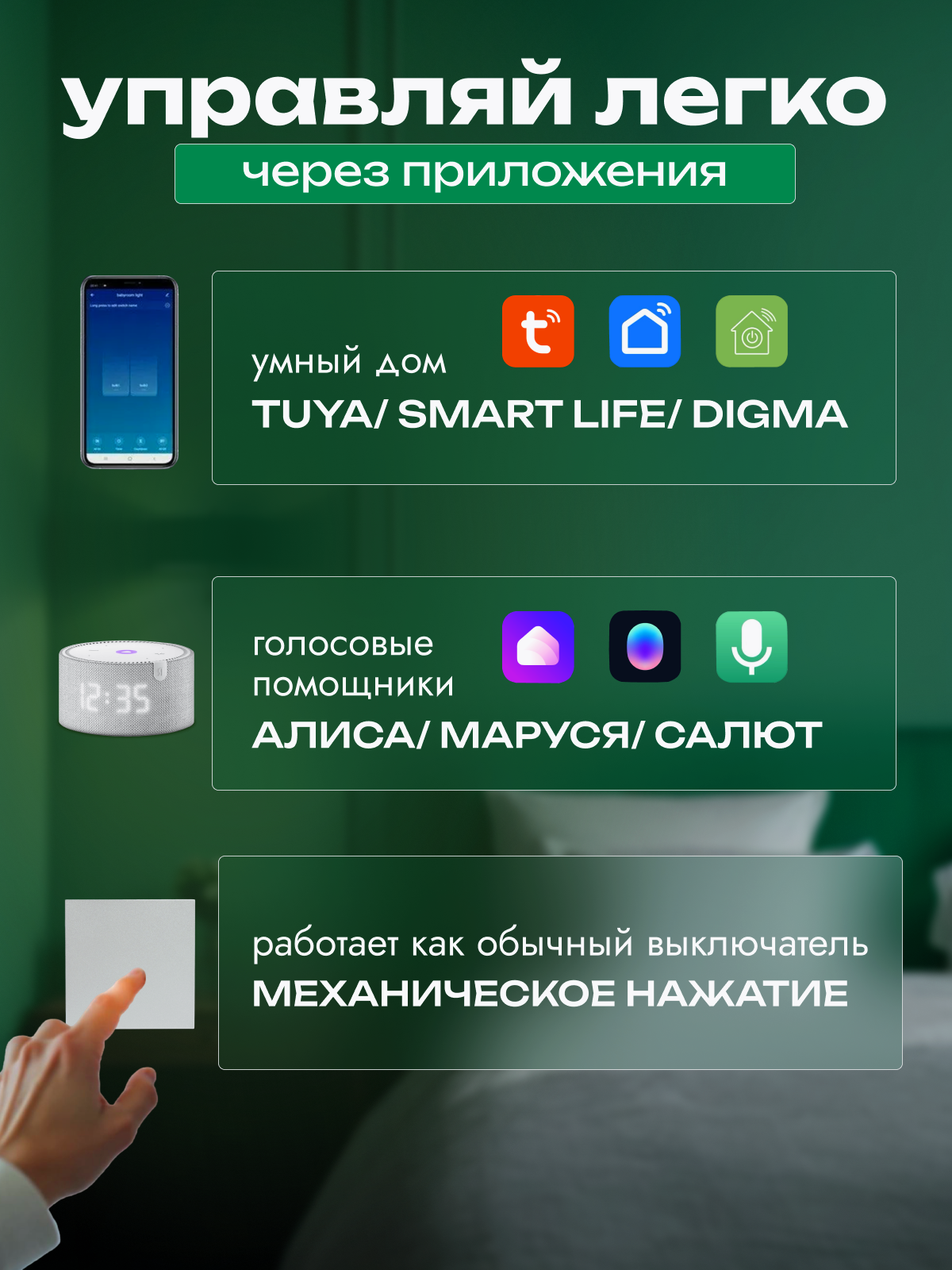 | Экосистема Умного дома | Amazon Alexa / DIGMA SmartLife / Google Home / Smart Life / Tuya Smart |
