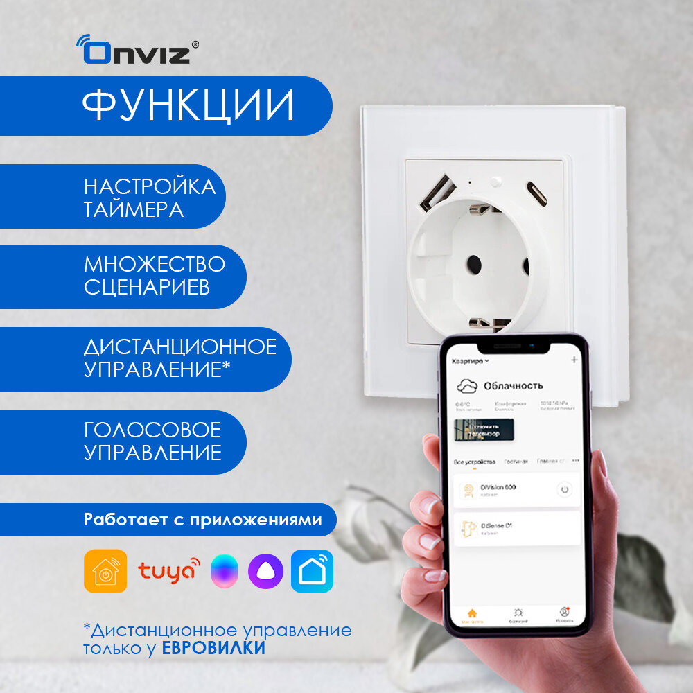 Отзывы на Умная розетка белая WiFi Tuya с USB и Type-C, работает с Алисой, с таймером и отслеживанием энергопотребления