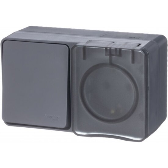 Блок Systeme Electric (schneider Electric) SCHNEIDER ELECTRIC AtlasDesign PROFI IP54 О/У Выключатель + Розетка з/к со шт. 16А 250B, 2-клав, 10А, Антрацит