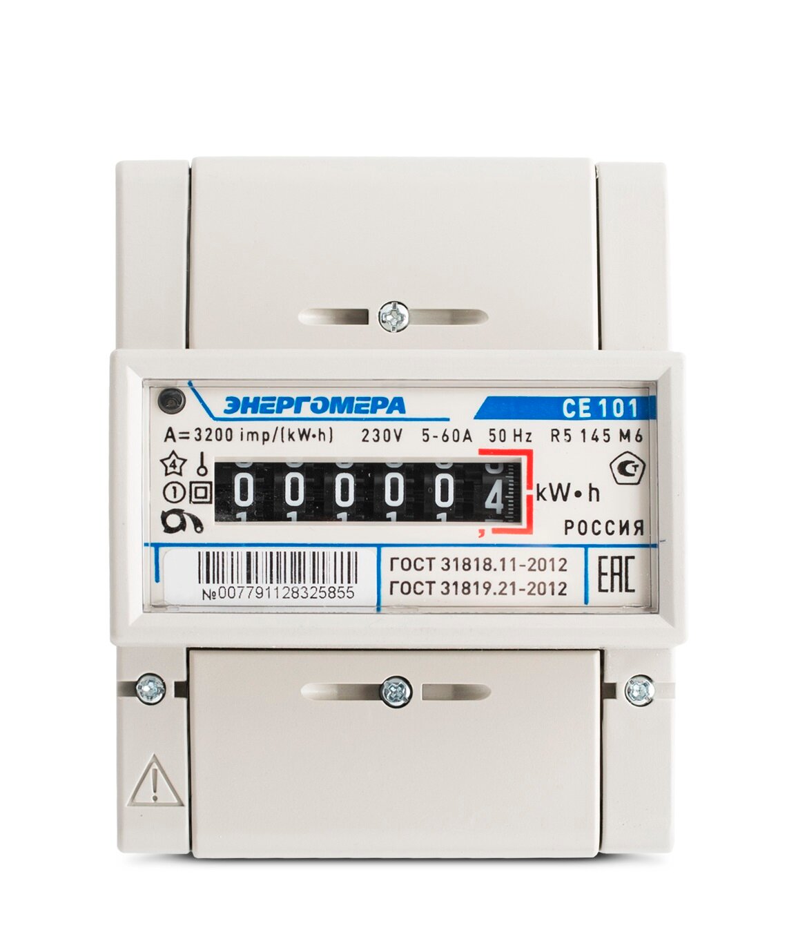 Электросчетчик однотарифный, однофазный СЕ 101 S6 145 М6 1ф 5-60А 1 класс точности механический экран в щиток спец. Энергомера 101001003007789
