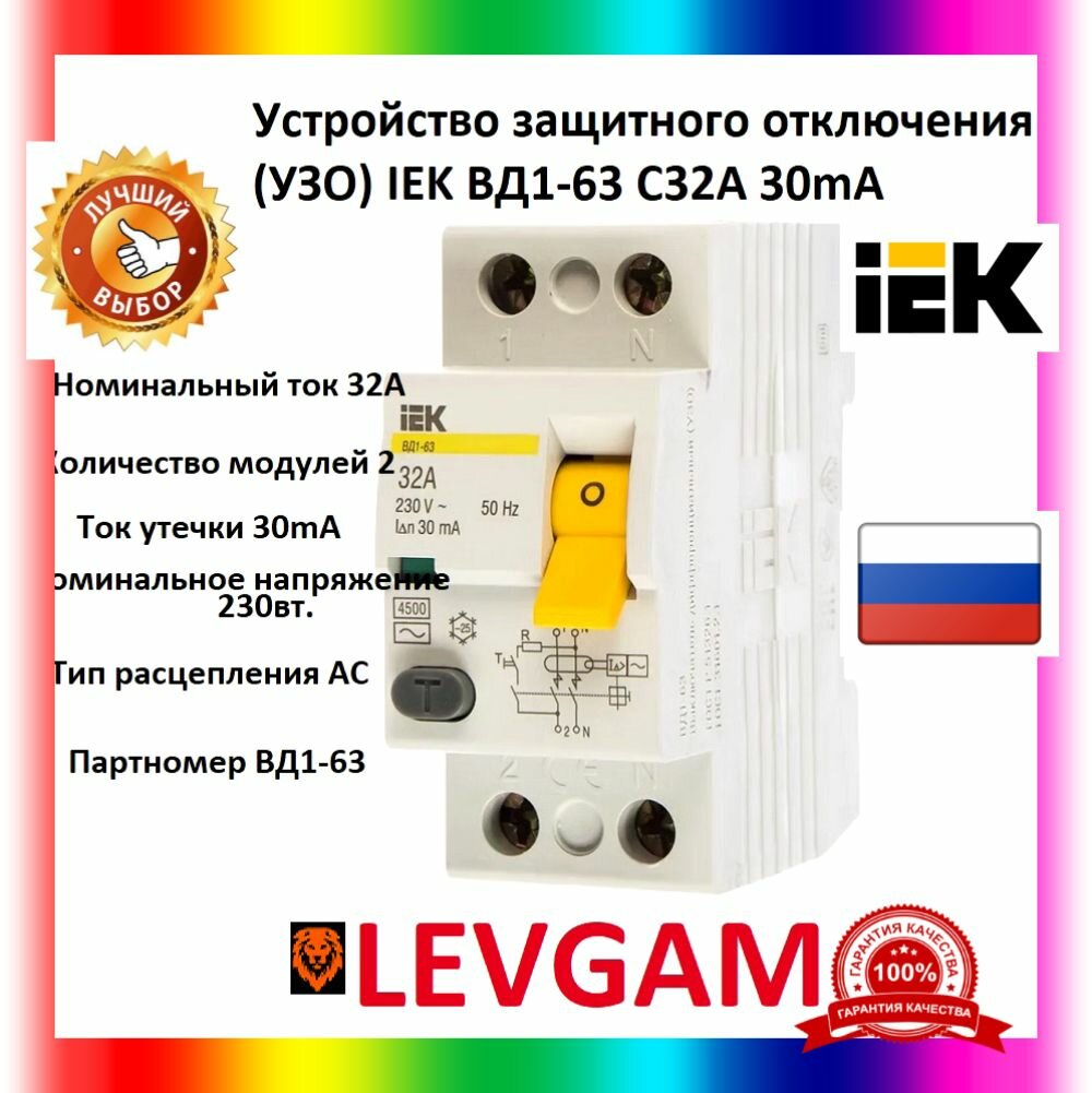 Устройства защитного отключения УЗО IEK ВД1-63 2Р С32А 30mA информация:
