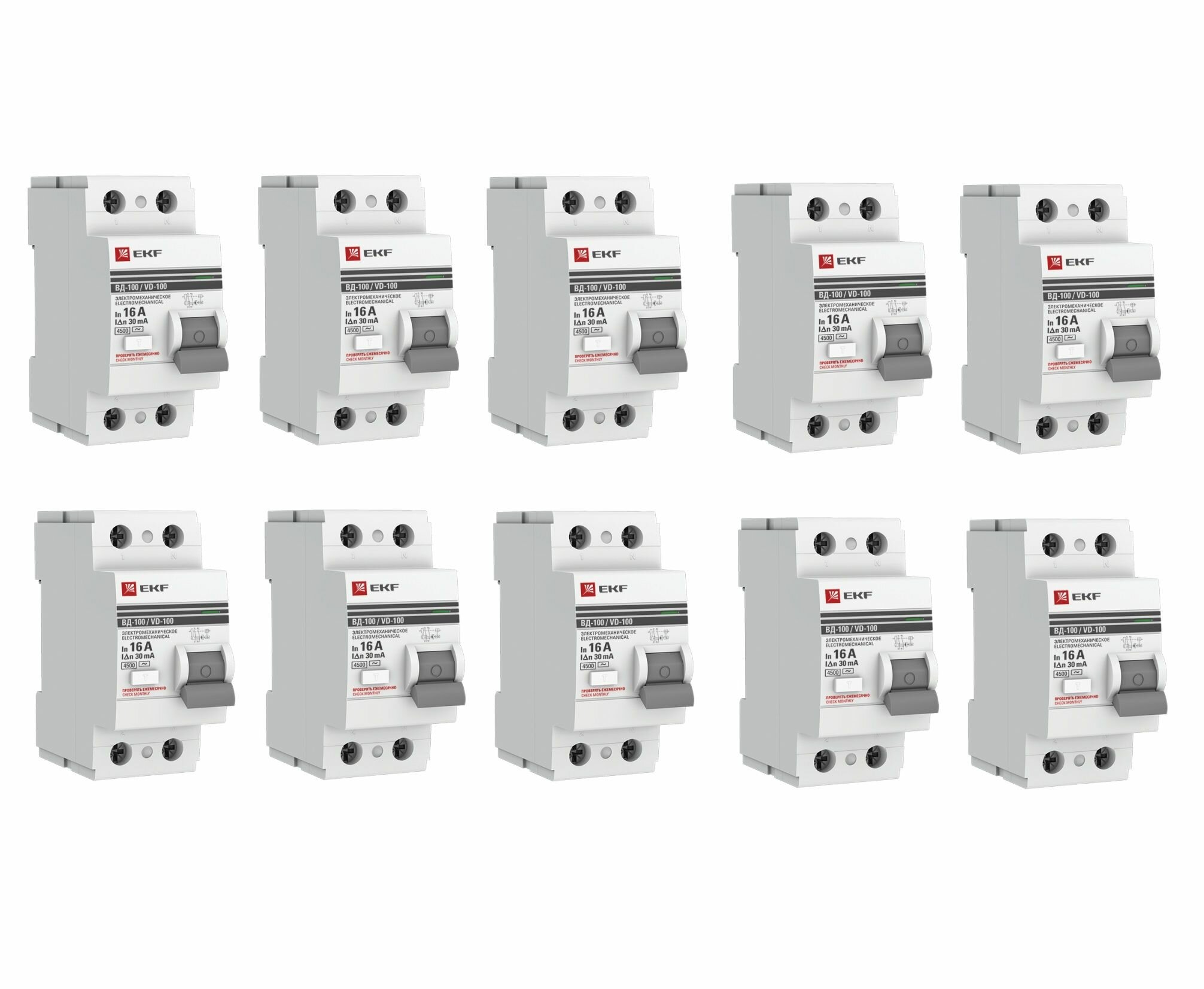 Устройство защитного отключения УЗО ВД-100 2P 16А/ 30мА (электромеханическое) EKF PROxima 10 штук информация: