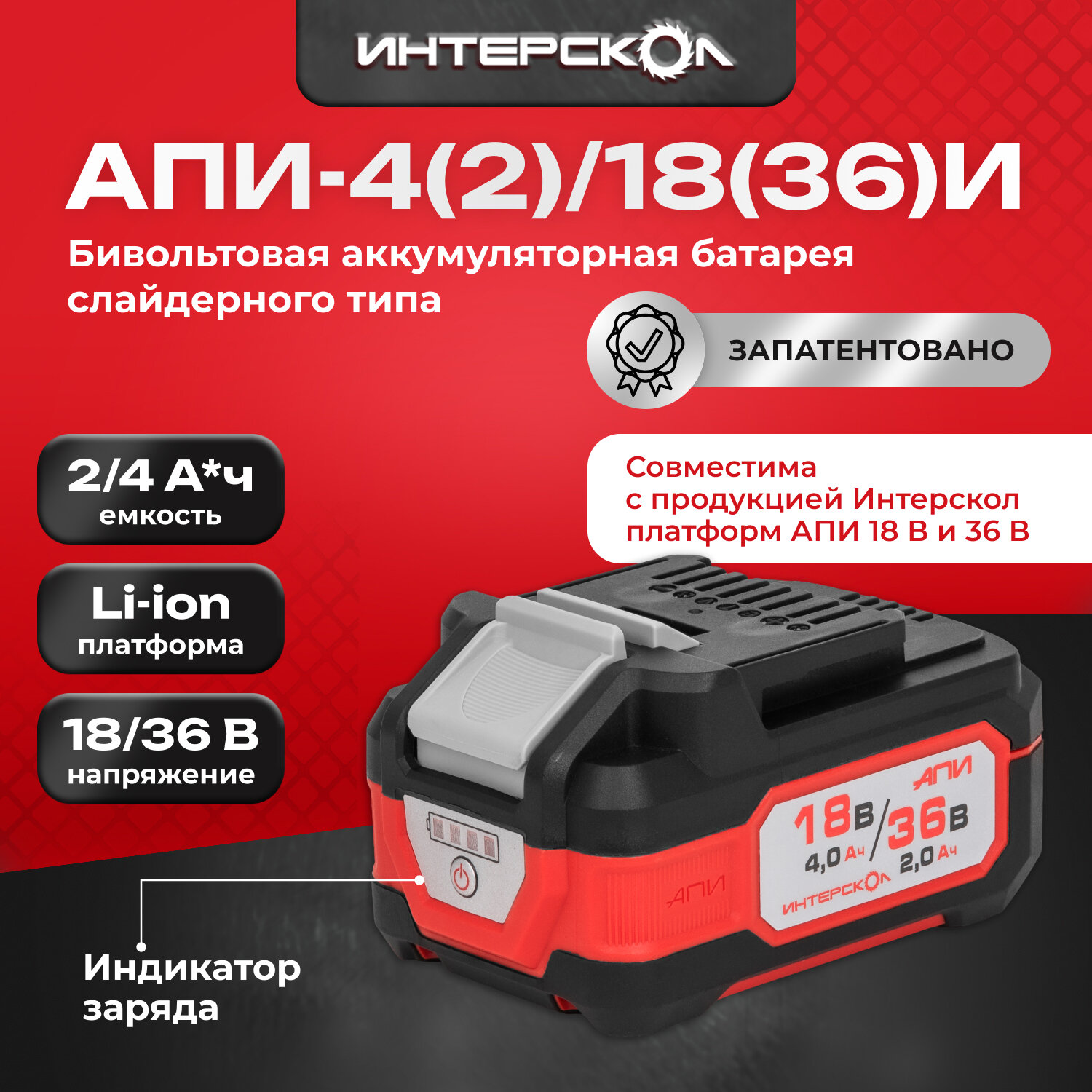 Аккумулятор Интерскол АПИ-4/18 (2400.021) 18В 4Ач Li-Ion