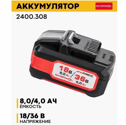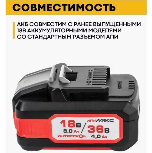 Аккумулятор ИНТЕРСКОЛ 18/36V 8.0 Ач Li-Ion АПИМАКС-8 10 990 ₽