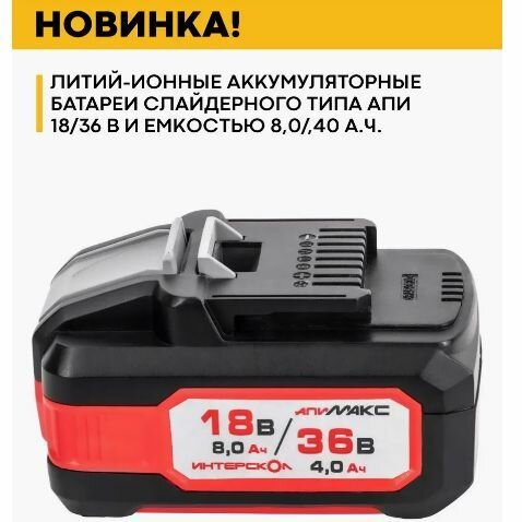 Аккумулятор ИНТЕРСКОЛ АПИМАКС-8(4)/18(36)И (8.0Ач 18В/4.0Ач 36В, Li-ion, с индикатором) 2400.308 информация: