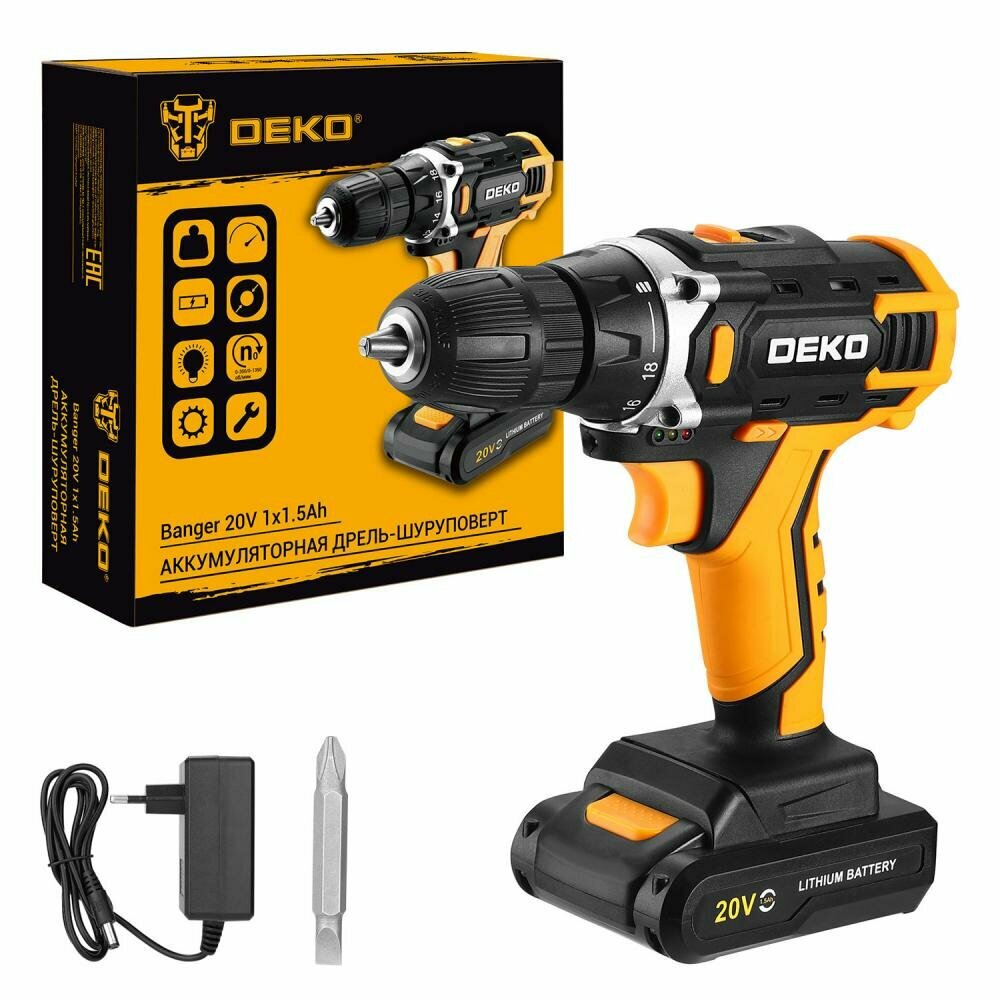10 цен на Аккумуляторная дрель-шуруповерт DEKO Banger 20V, 20В, 1x1.5Ач 080-1004