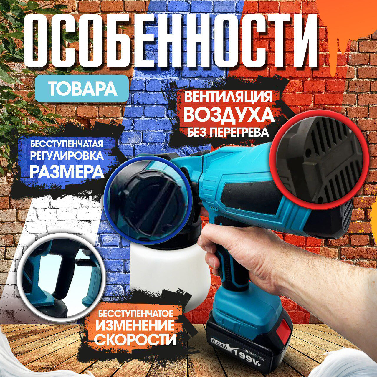Беспроводной распылитель краскопульт аккумуляторный 1 АКБ 4Ач и ЗУ