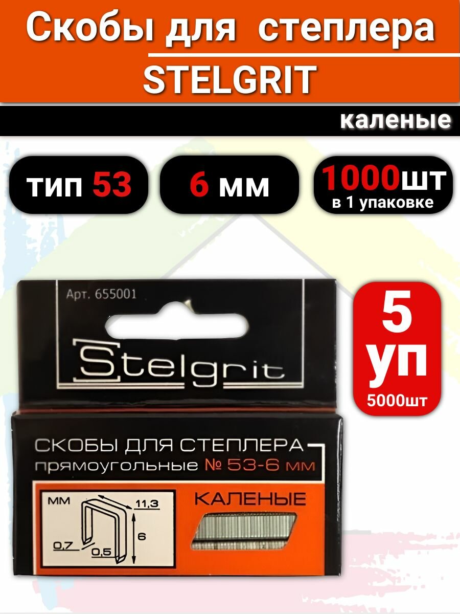 Скобы для степлера тип 53 Stelgrit 6x0,7 мм, мебельные, каленые 1000 шт./уп.