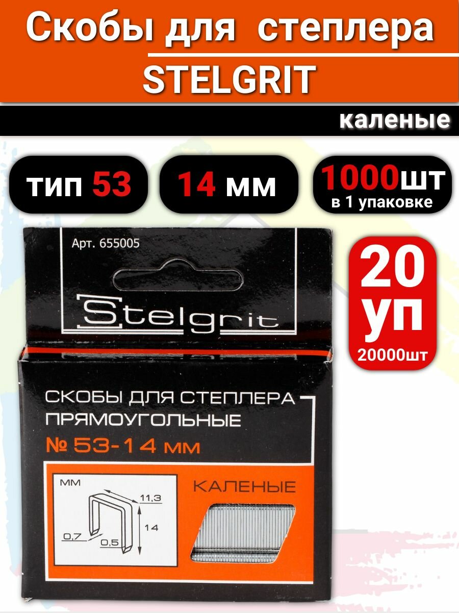 Скобы для строительного степлера каленые, 14мм, 20уп по 1000 шт. информация: