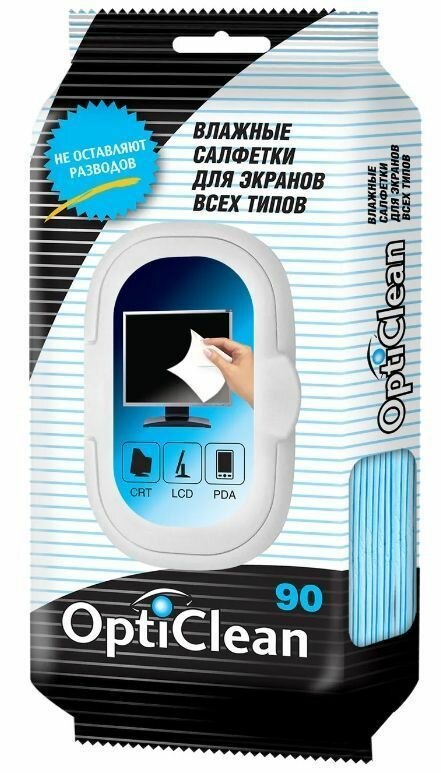 Opti Clean Влажные салфетки OptiClean, для экранов, 90 шт./В упаковке шт: 1