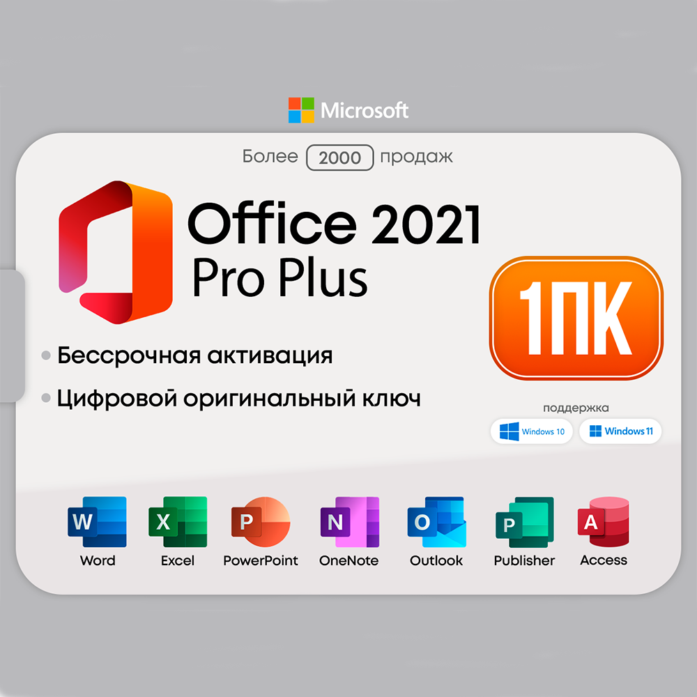 Microsoft Office 2021 Professional Plus Retail | Электронный ключ | Бессрочный | 1 ПК | Без привязки к учетной записи информация: