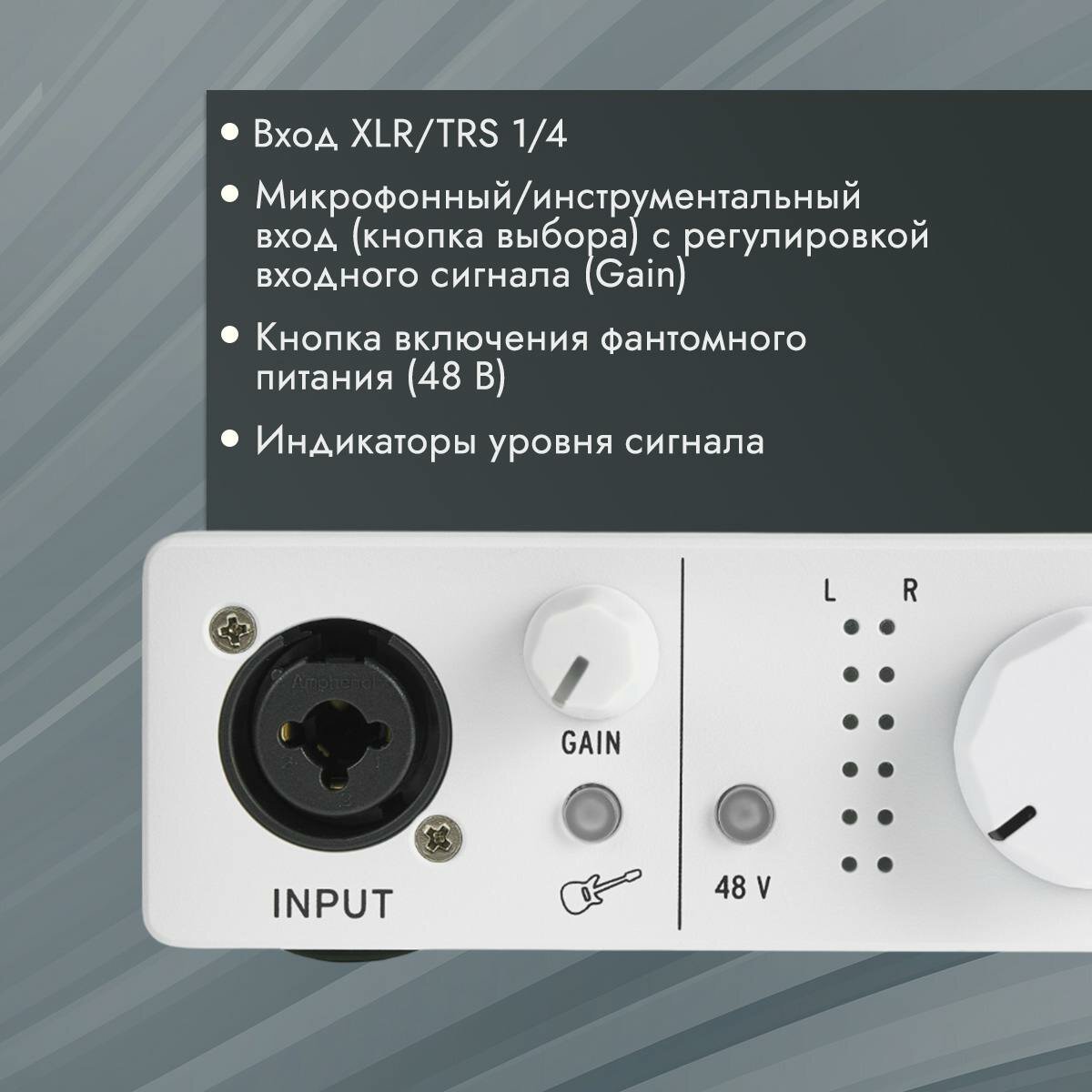 | Разъемы и интерфейсы | выход HDMI, инструментальный вход (Hi-Z), фантомное питание |
