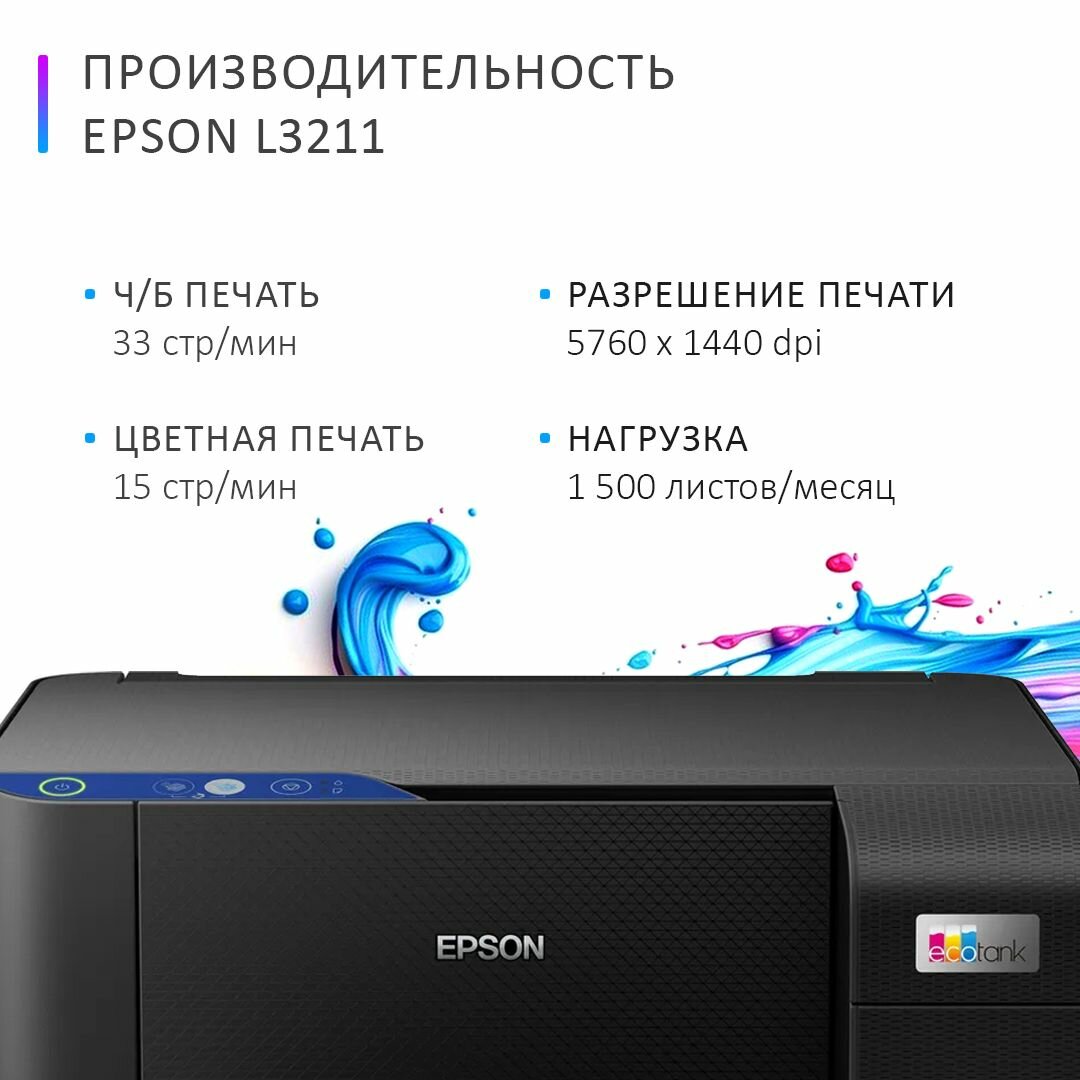 10 цен на МФУ струйный цветной Epson L3211 / СНПЧ принтер, сканер, копир без Wi-Fi