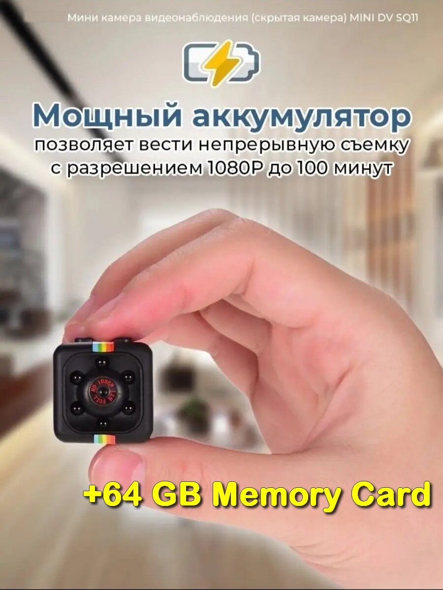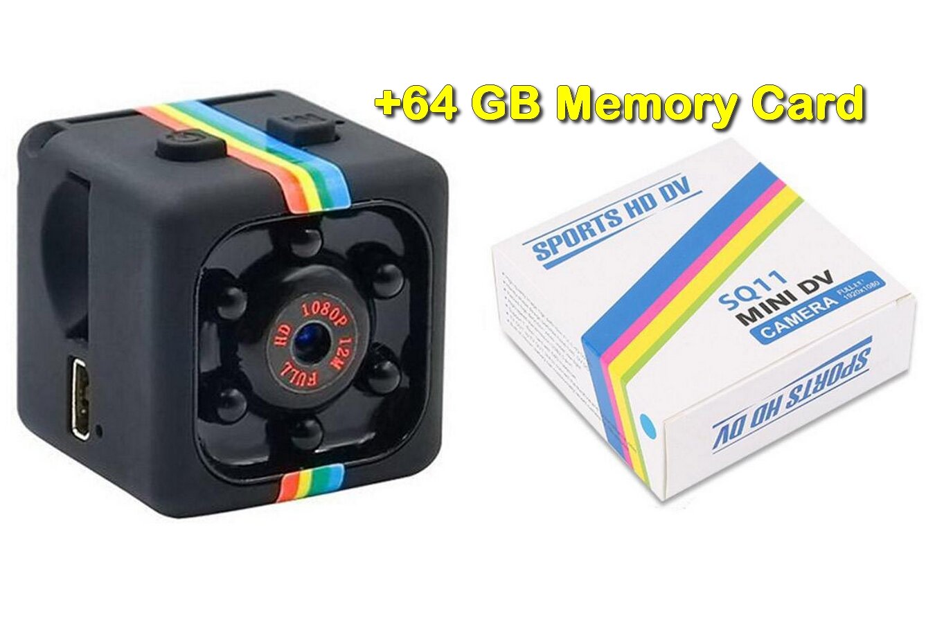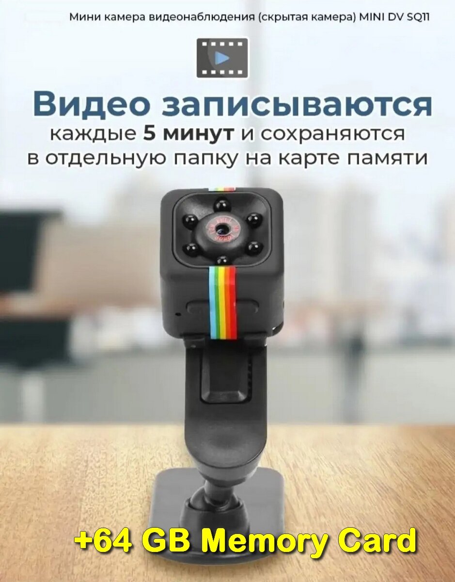 Веб камера видеонаблюдения SQ11 dv mini Черная 64 GB информация: