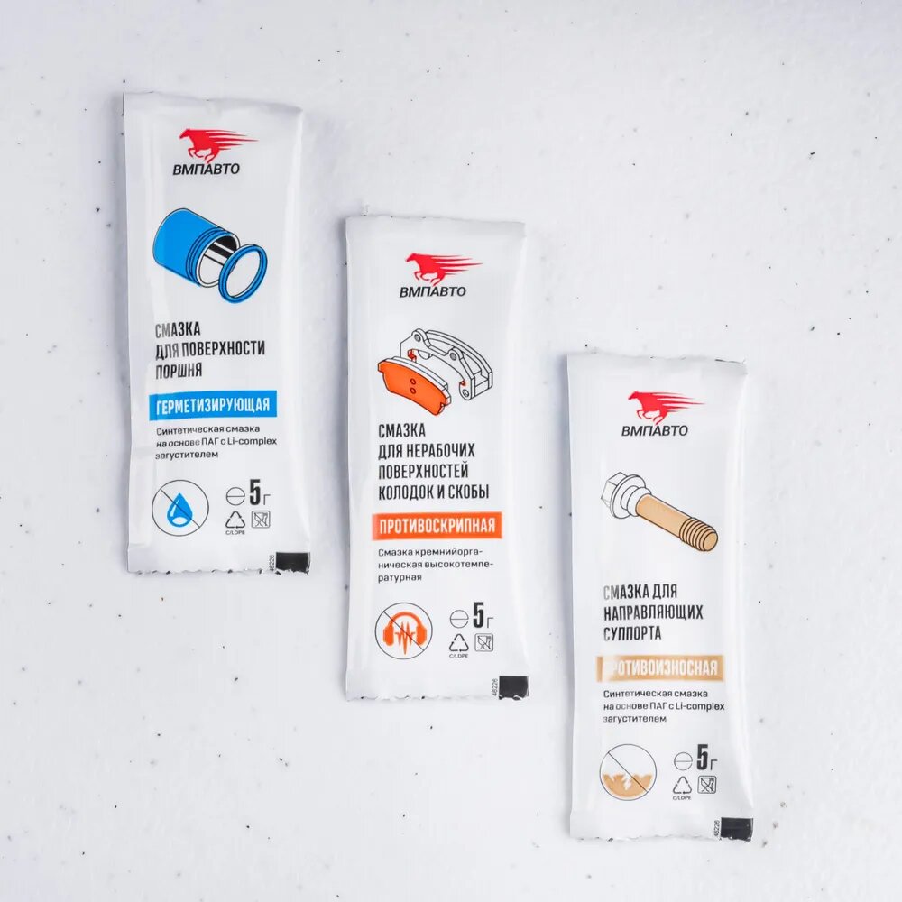 Набор смазок для направляющих и поршней суппортов, тормозных колодок, ВМПАВТО информация: