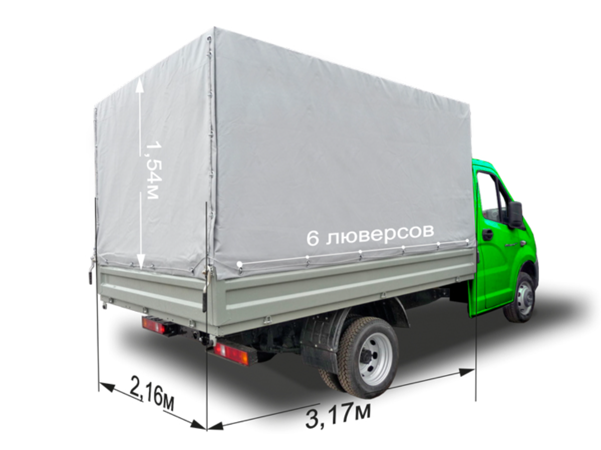 Отзывы на Тент на Газель Next двухсторонний ПВХ 600 гр. м2 усиленный (размер 3,17х2,16х1,54, 6 люверсов металл борта) Серый