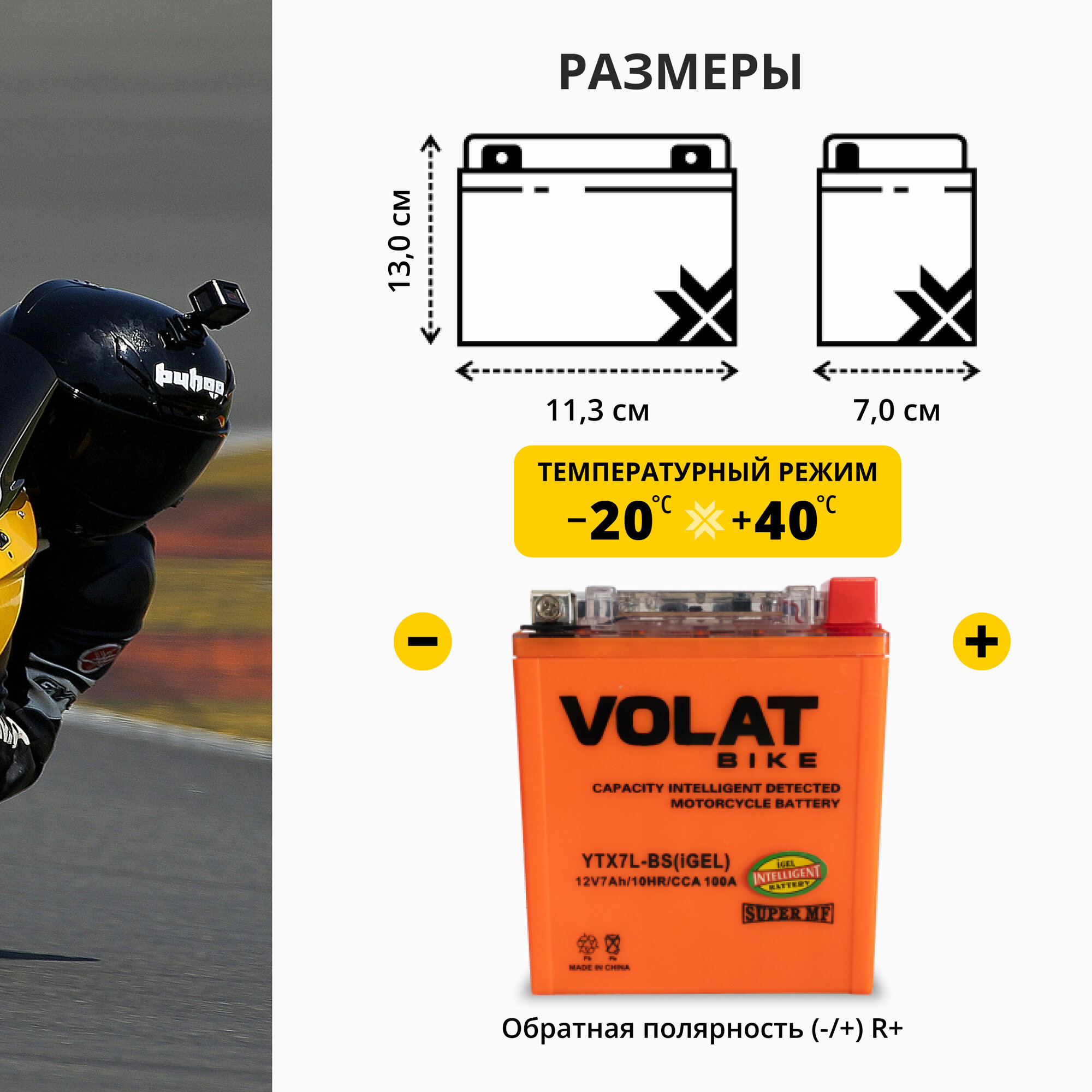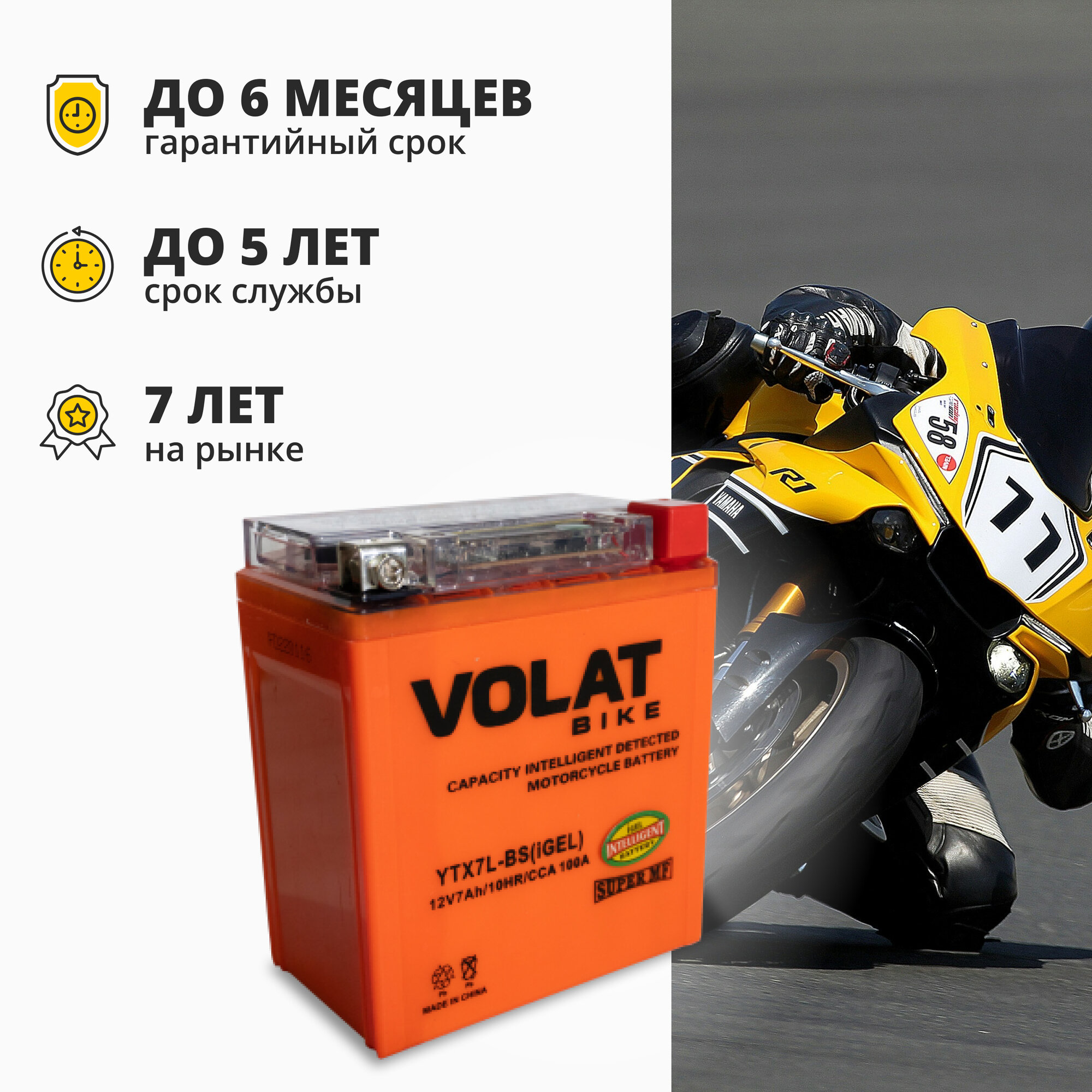 Отзывы на Аккумулятор для мотоцикла 12v Volat YTX7L-BS(iGEL) обратная полярность 7 Ah 100 A гелевый, акб на скутер, мопед, квадроцикл, мотоцикл