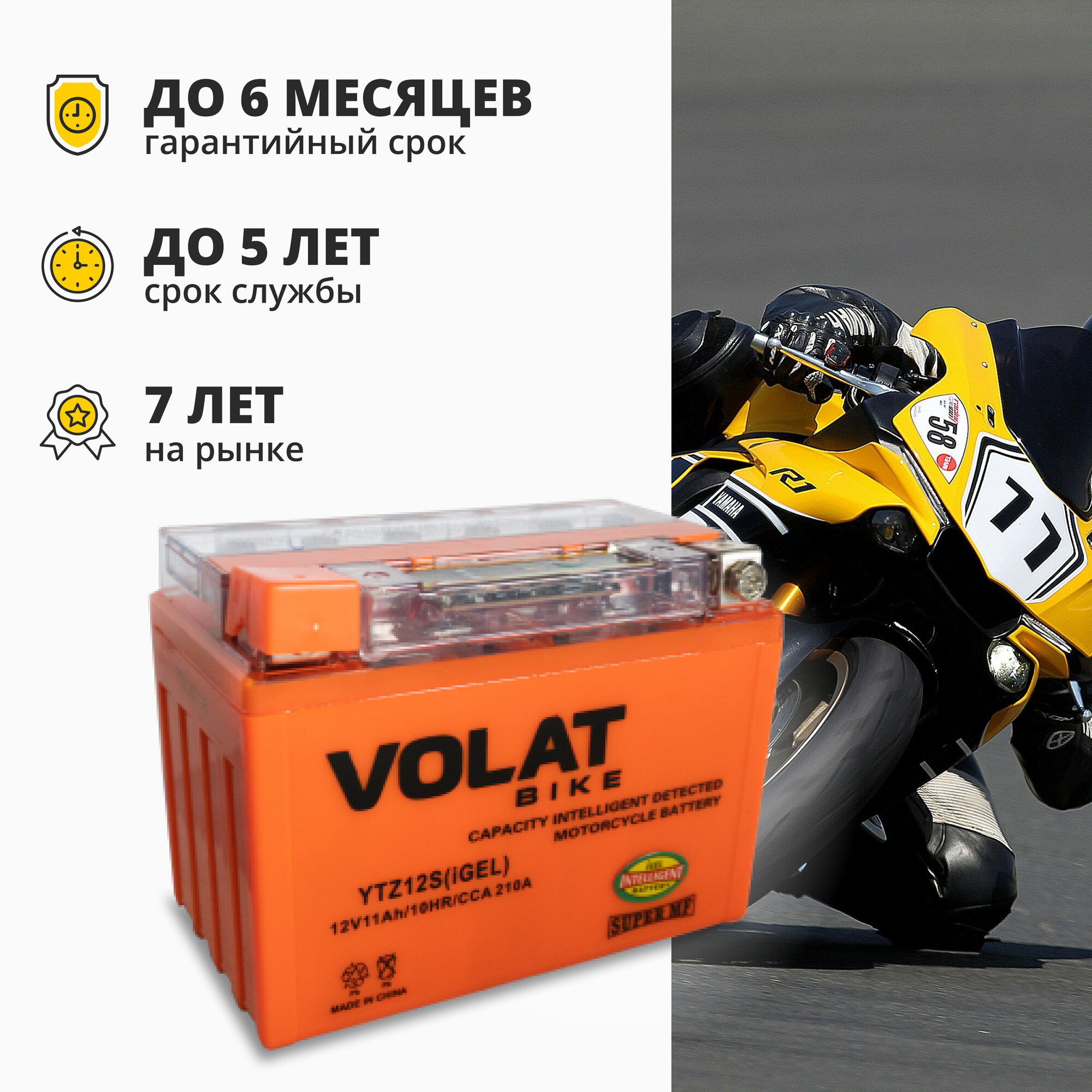 0 отзывов, средняя оценка 0. Чтобы купить «Аккумулятор для мотоцикла 12v Volat YTZ12S(iGEL) прямая полярность 11 Ah 210 A гелевый, акб на скутер, мопед, квадроцикл, мотоцикл» по лучшей цене мы сканируем авито, алиэкспресс, маркет, озон, савеловский, плеер, горбушку, беру, официальные сайты и находим минимальную. Администрация не несет ответсвенность актуальность цен на Аккумулятор для мотоцикла 12v Volat YTZ12S(iGEL) прямая полярность 11 Ah 210 A гелевый, акб на скутер, мопед, квадроцикл, мотоцикл, более подробно узнавайте на сайте магазина.