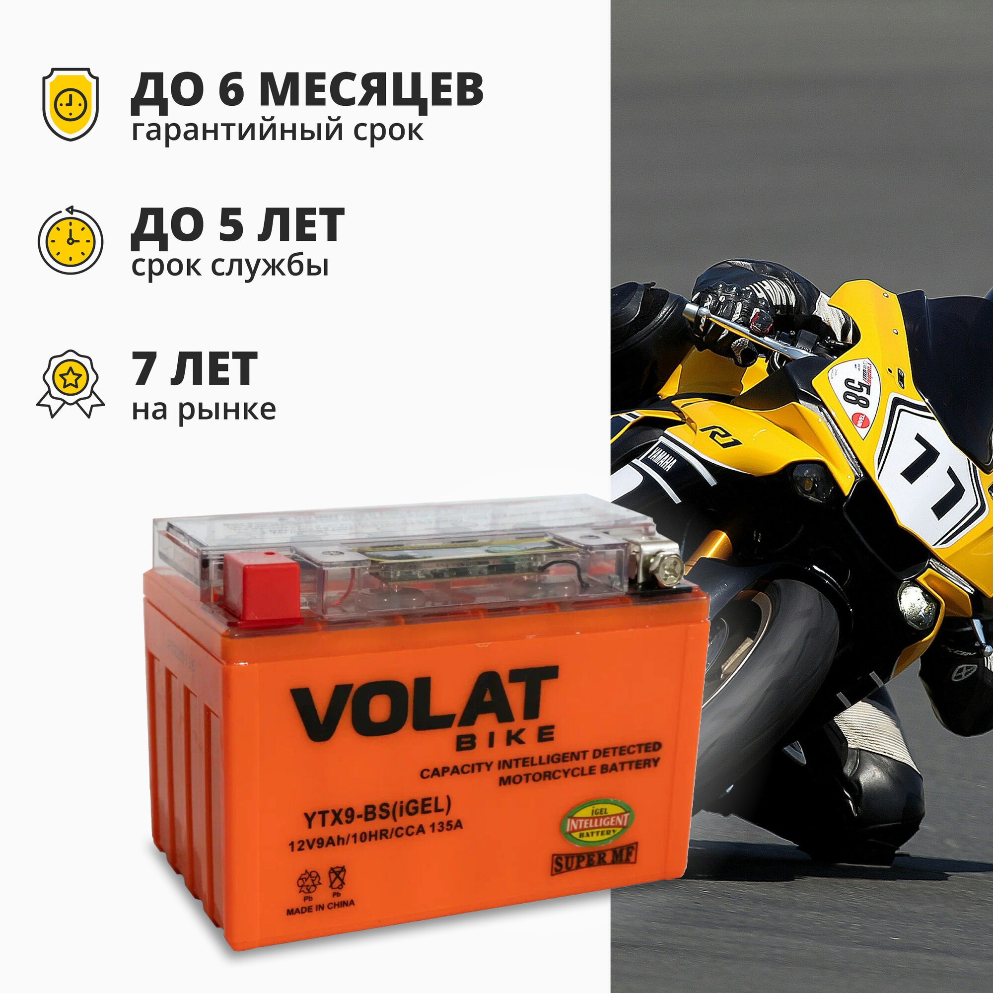 Отзывы на Аккумулятор для мотоцикла 12v Volat YTX9-BS(iGEL) прямая полярность 9 Ah 135 A гелевый, акб на скутер, мопед, квадроцикл, мотоцикл