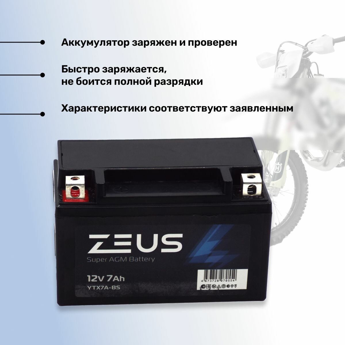 Отзывы на Аккумулятор стартерный агм для мотоцикла/квадроцикла/скутера ZEUS SUPER AGM YTX7A-BS (12V/7Ah) (MT 12-7, UTX7A-BS, CT 1207)