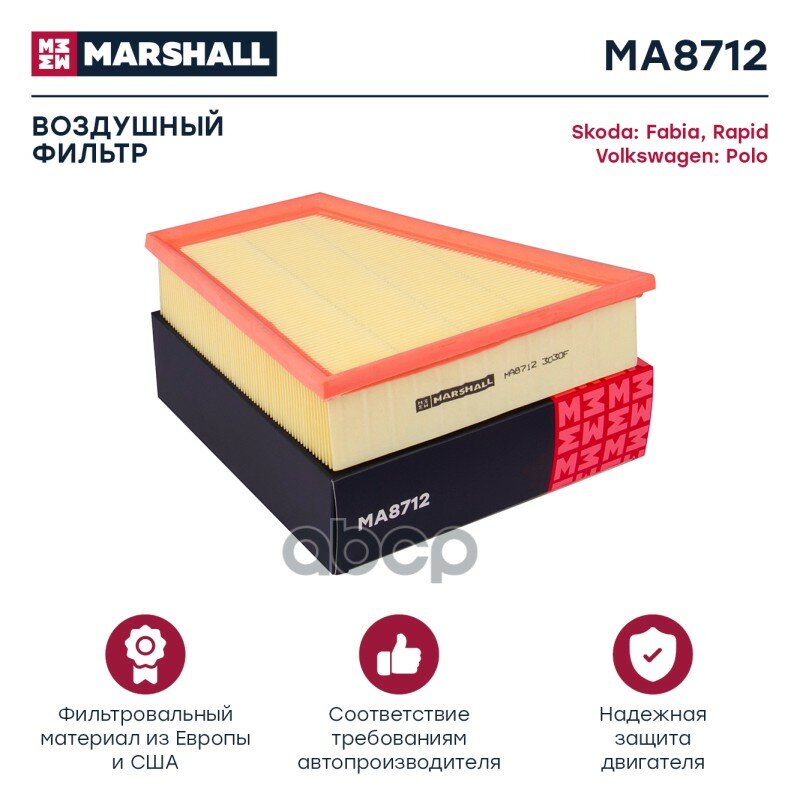 MARSHALL MA8712 Фильтр воздушный Skoda Fabia I, II 99- / Rapid (NH) 12-; VW Polo IV, V 02- (MA8712)