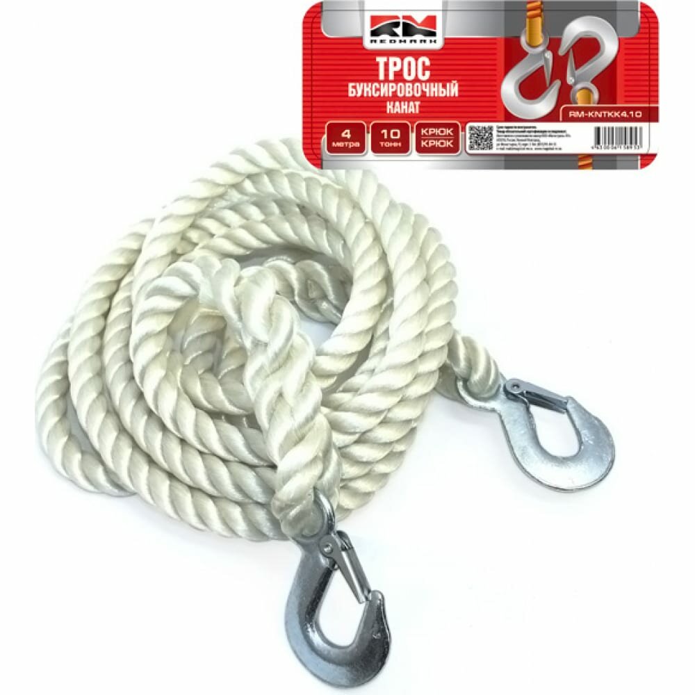 Буксировочный трос RedMark, канат, 10т, длина 4м, крюк-крюк, белый информация: