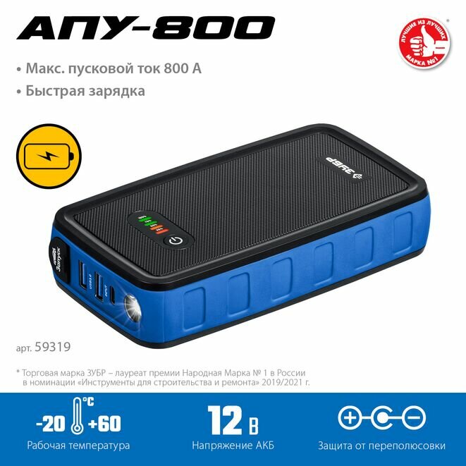 10 цен на ЗУБР АПУ-800, 12 В, макс. 800 А, аккумуляторное пусковое устройство, Профессионал (59319)
