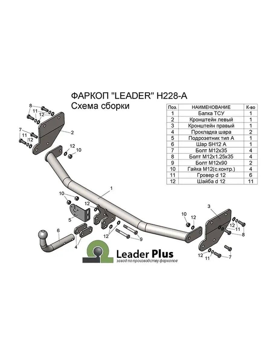 Фаркоп для hyundai solaris 2 (седан) (2017-...)(без электрики), LEADER PLUS H228A (1 шт.) 11 833 ₽