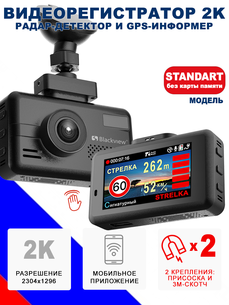 Комбо-устройство сигнатурное/ Видеорегистратор с радар детектором / Видеорегистратор с оповещениями о камерах Blackview X+256 Гб,WiFi,2K 15 380 ₽