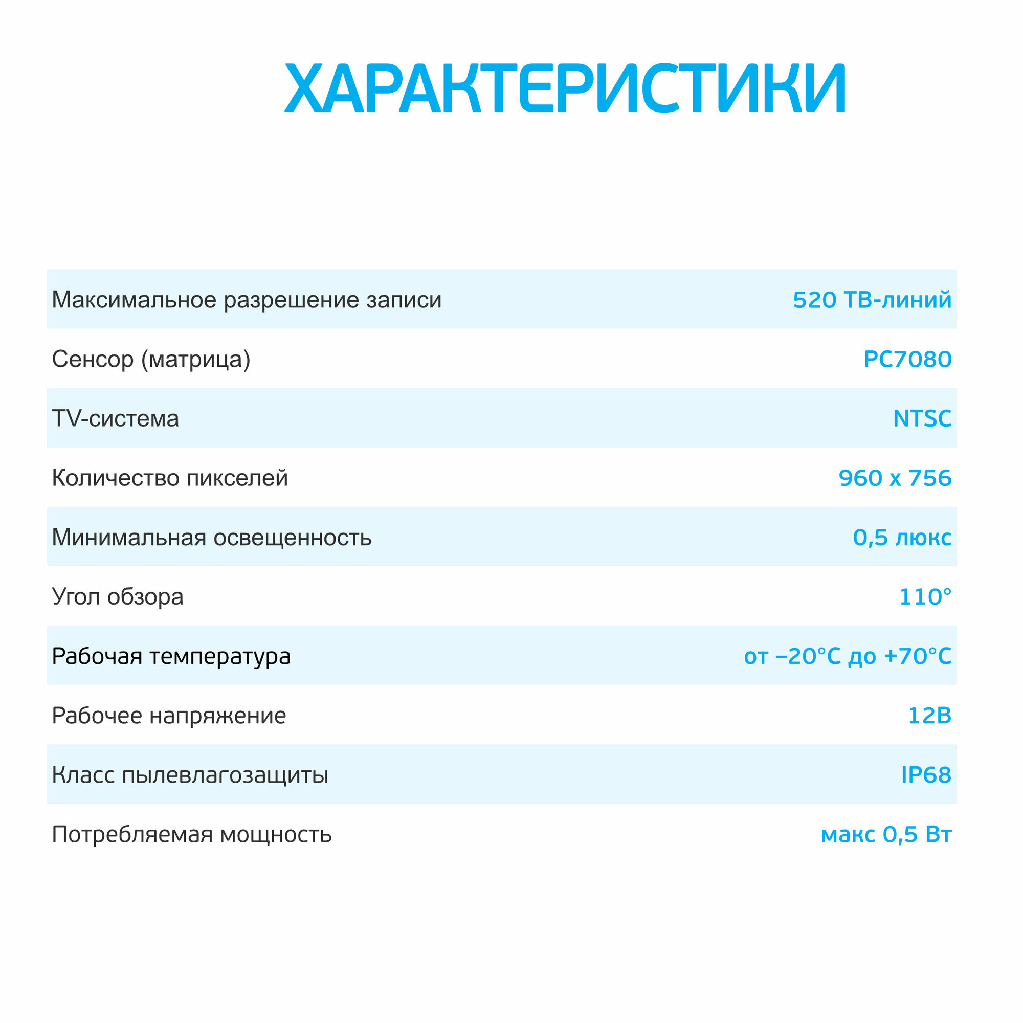 | Максимальное рабочее напряжение камеры | 12 В |