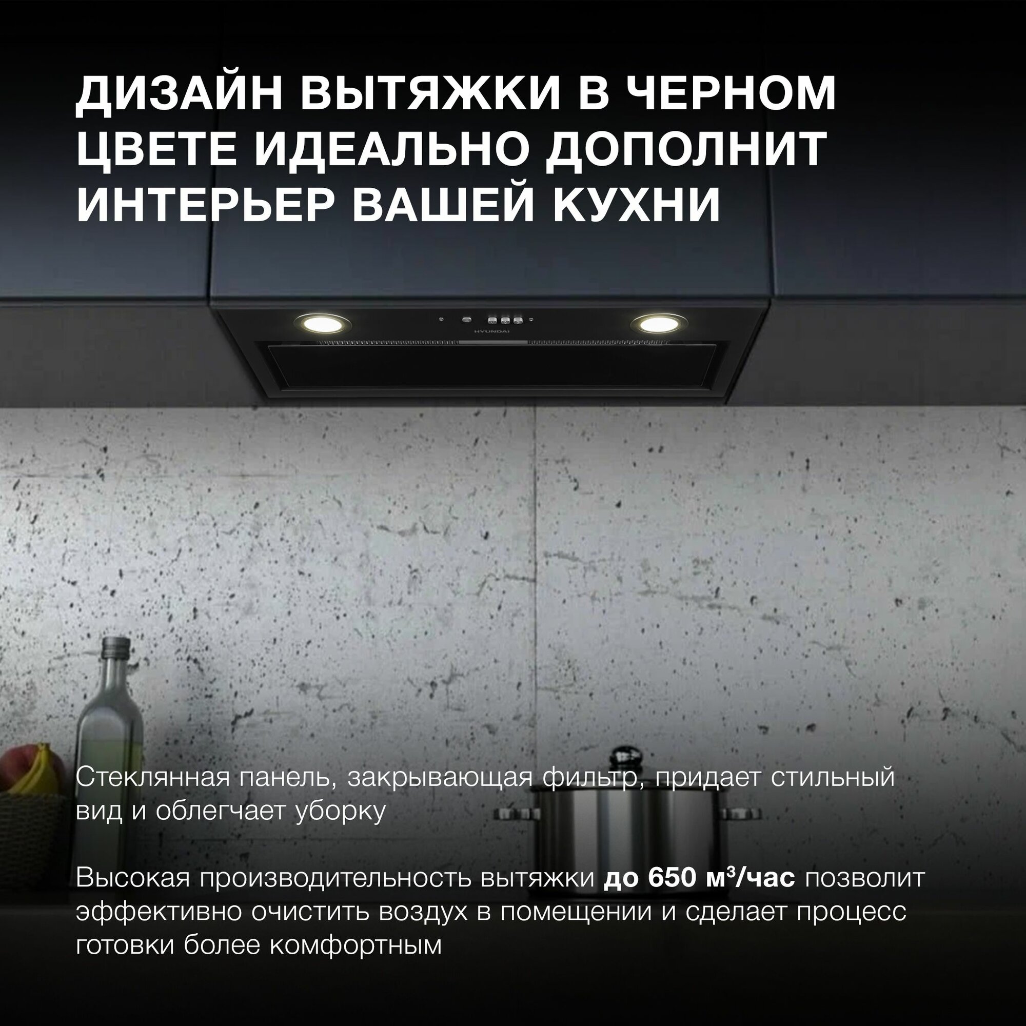 Вытяжка встраиваемая Hyundai HBB 6036 BG черный информация: