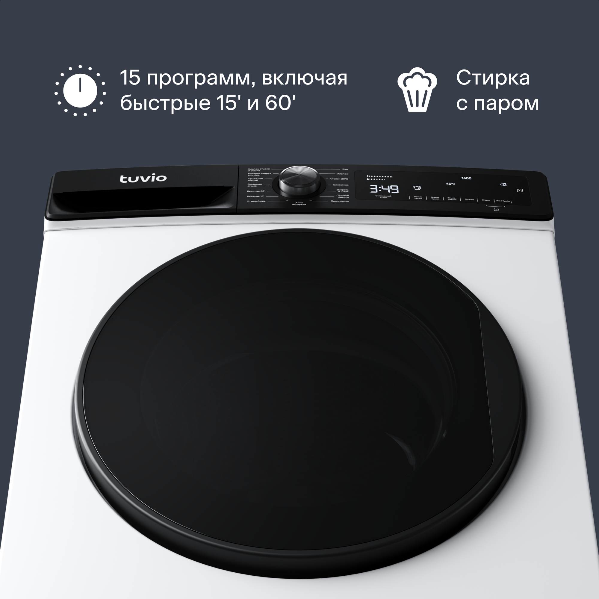 Стиральная машина с сушкой, инвертором и паром Tuvio DFF98HW21, белый информация: