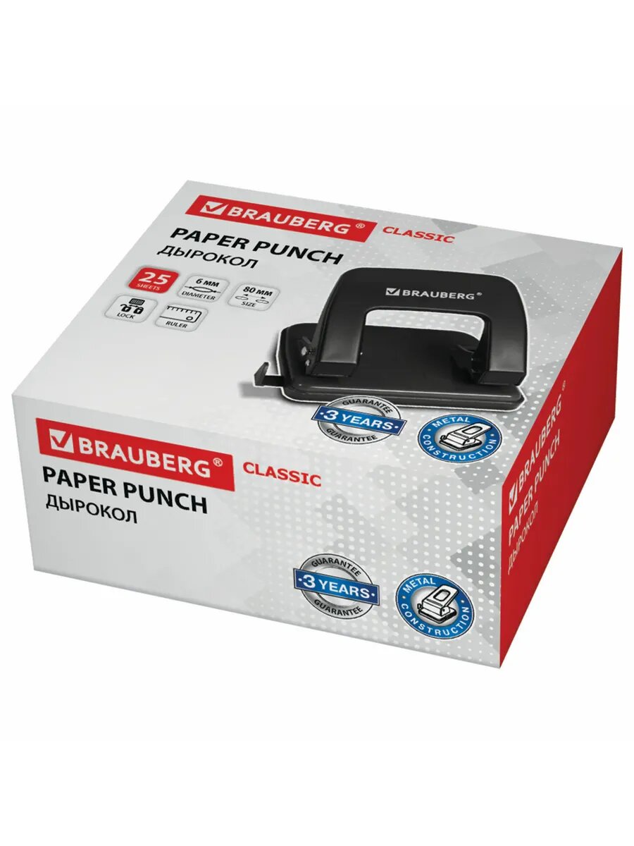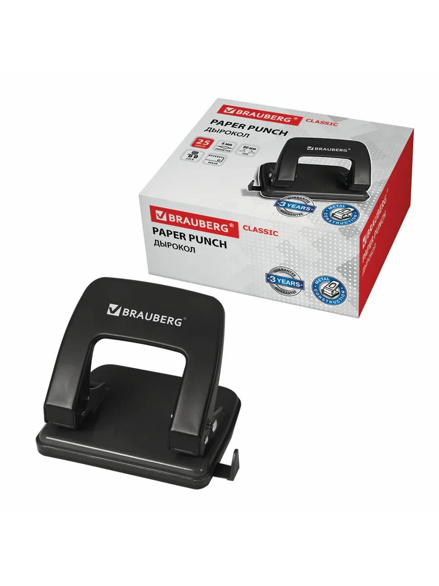 Дырокол металлический BRAUBERG "Classic", до 25 листов, черный, 229697