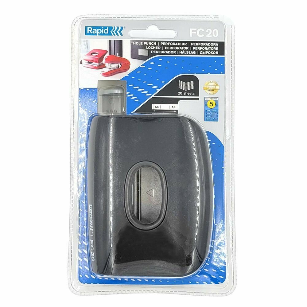 Дырокол средний Rapid FC20, 20 л, диаметр отверстия 5,5 мм, блистер черный информация:
