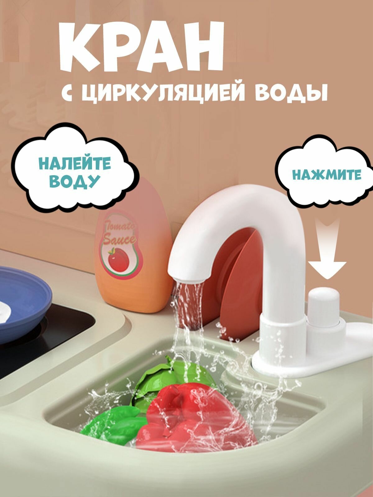 Отзывы на Кухня детская игровая с водой и паром WiMi, со светом и звуком, с краном, игрушечная посуда с продуктами