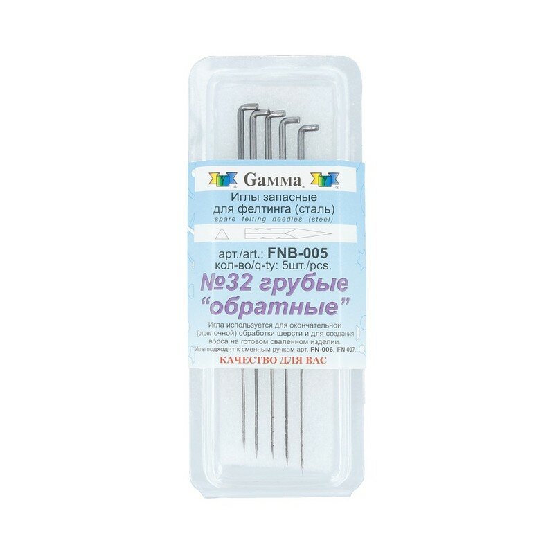 Иглы для валяния (фелтинга) "Gamma" FNB-005 запасные 5 шт №32 грубые (обратные) информация: