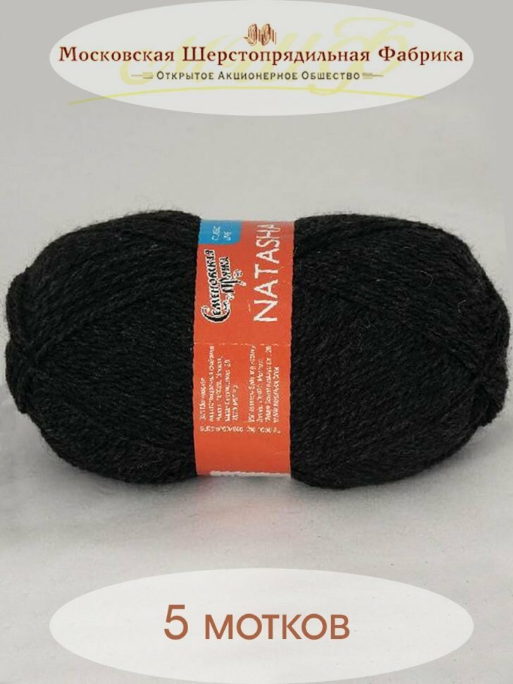 Нитки для вязания Семеновская пряжа (Natasha) Наташа 5 шт, полушерсть, черный №1 1 081 ₽