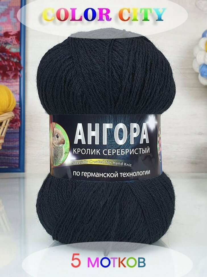 10 цен на Пряжа Color City ангора кролик серебристый 2622 черный (5 мотков)