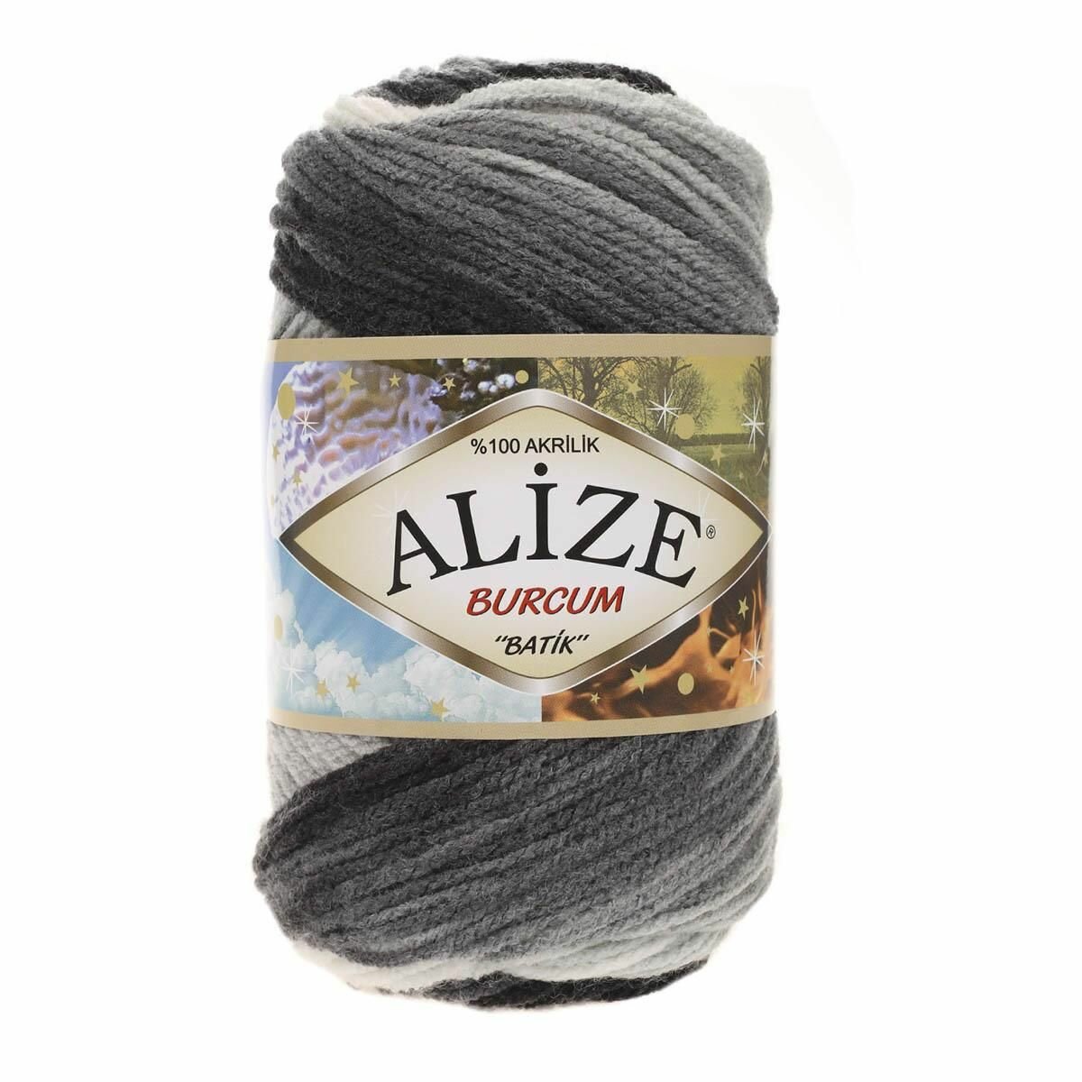 Пряжа Alize Burcum Batik серый-белый-темно-серый (1900), 100%акрил, 210м, 100г, 5шт