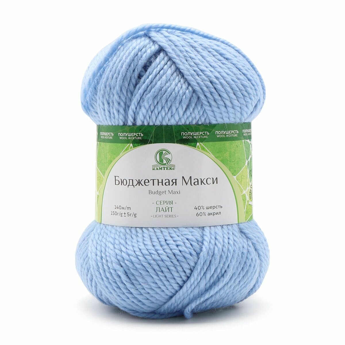 Пряжа Бюджетная макси, Камтекс, голубой - 015, 40% шерсть, 60% акрил, 4 мотка, 150 г, 140 м. информация: